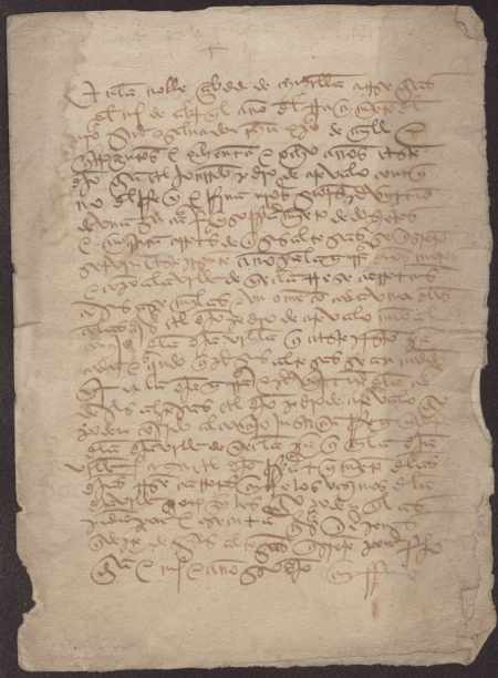 Carta de poder de Pedro de Arévalo, contino de los Reyes Católicos, al concejo de Yecla para que reparta las 13 carretas que le correspondían para la guerra con Granada.