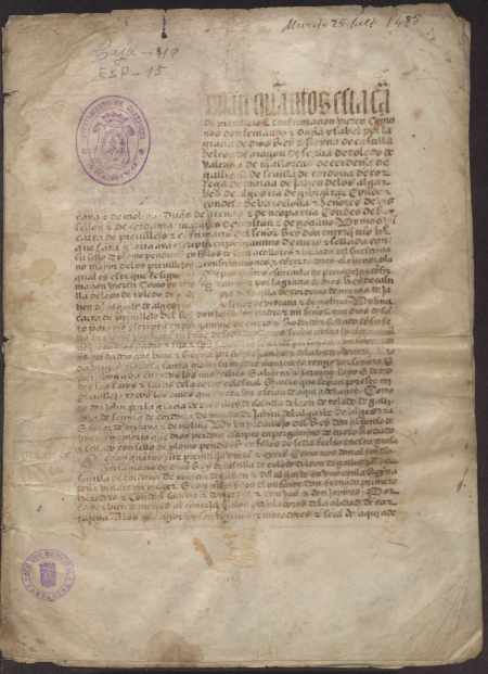 Los Reyes Católicos confirman privilegios otorgados por los reyes anteriores:- 1455-12-19. Ávila. Carta plomada de Enrique IV a Cartagena, confirmando el privilegio rodado otorgado por Juan II.- 1420-4-18. Valladolid. Privilegio rodado de Juan II a Cartagena, confirmando el privilegio rodado otorgado por Alfonso X.- 1272-6-25. Alcaraz. Privilegio rodado de Alfonso X a Cartagena, por el cual hace francos a los vecinos y a los mercaderes de Cartagena y concede a la ciudad derecho tener dehesa, merced para construir hornos, tiendas y baños, patente de corso, derecho a defenderse de enemigos tanto por mar como por tierra, y derecho a compensación si algún ganado ocasiona daño a sus términos.