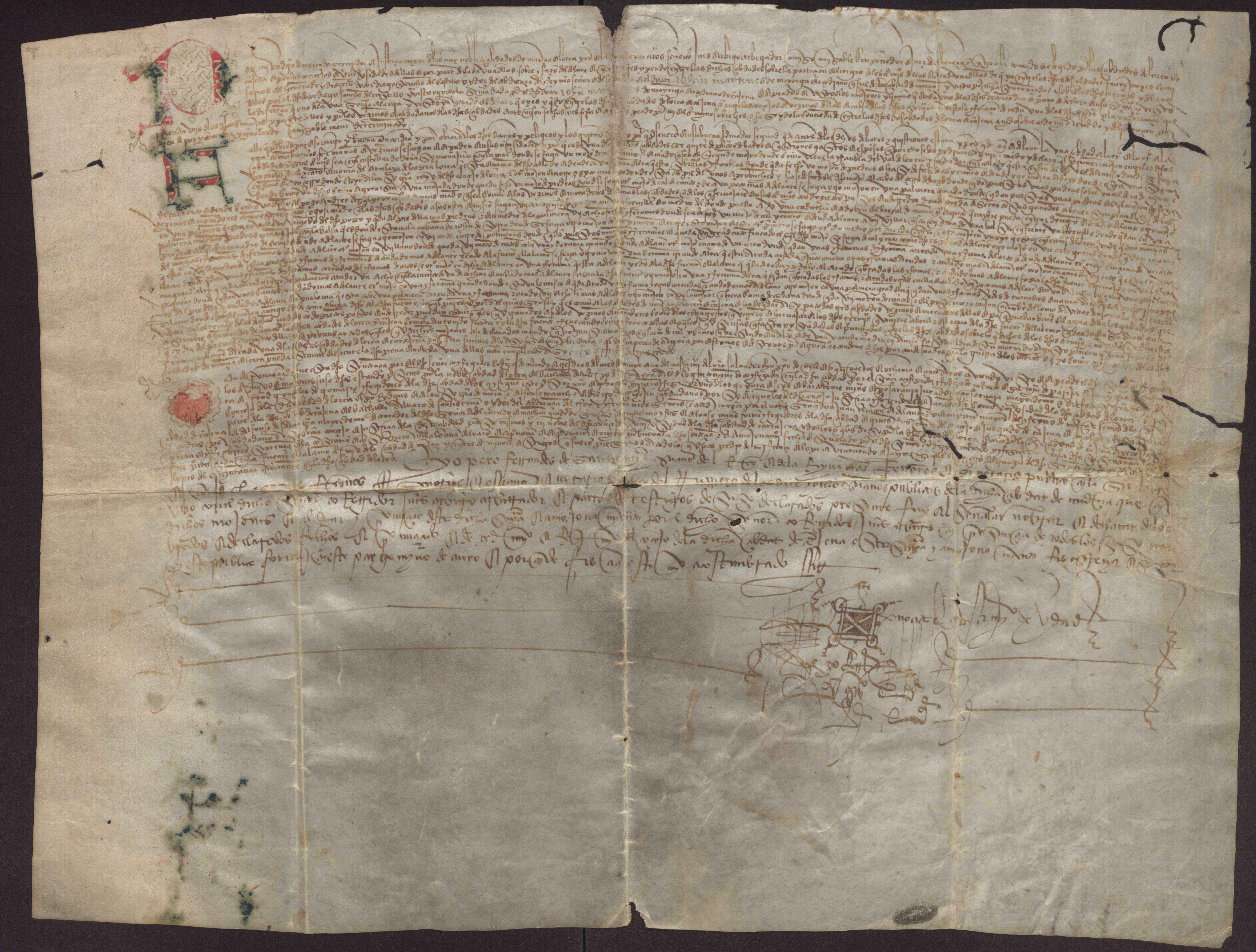 Testimonio de la sentencia que dio Rodrigo de Mercado, corregidor de Lorca y Murcia, en el pleito de términos seguido por las ciudades de Lorca y Cartagena.