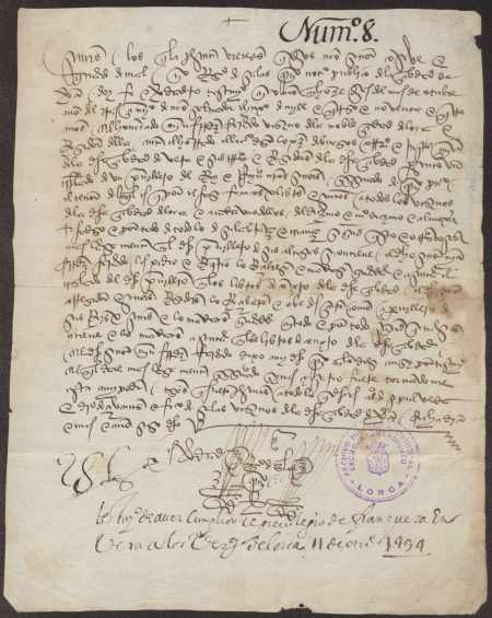 Testimonio del notario público de Vera,Rodrigo de Salas, de la presentación ante el concejo de Vera del traslado de un privilegio de los Reyes Católicos que eximía a los vecinos de Lorca de pagar diezmo, medio diezmo, portazgo y almojarifazgo de todo lo que ellos cultivasen y criasen.