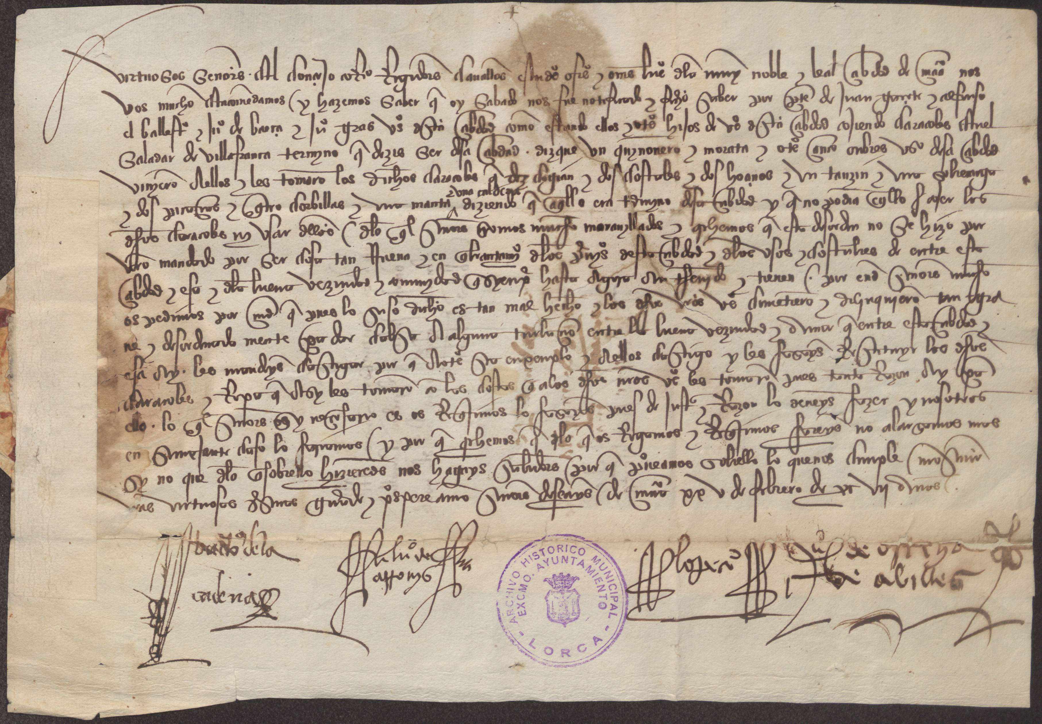 Pub. GARCÍA DÍAZ, I. : ''Documentáción medieval del Archivo Municipal de Lorca (1257-1504). Estudio y edición''. Editum, Ayto de Lorca y Academia Alfonso X el Sabio; Murcia, 2007; p.354-355