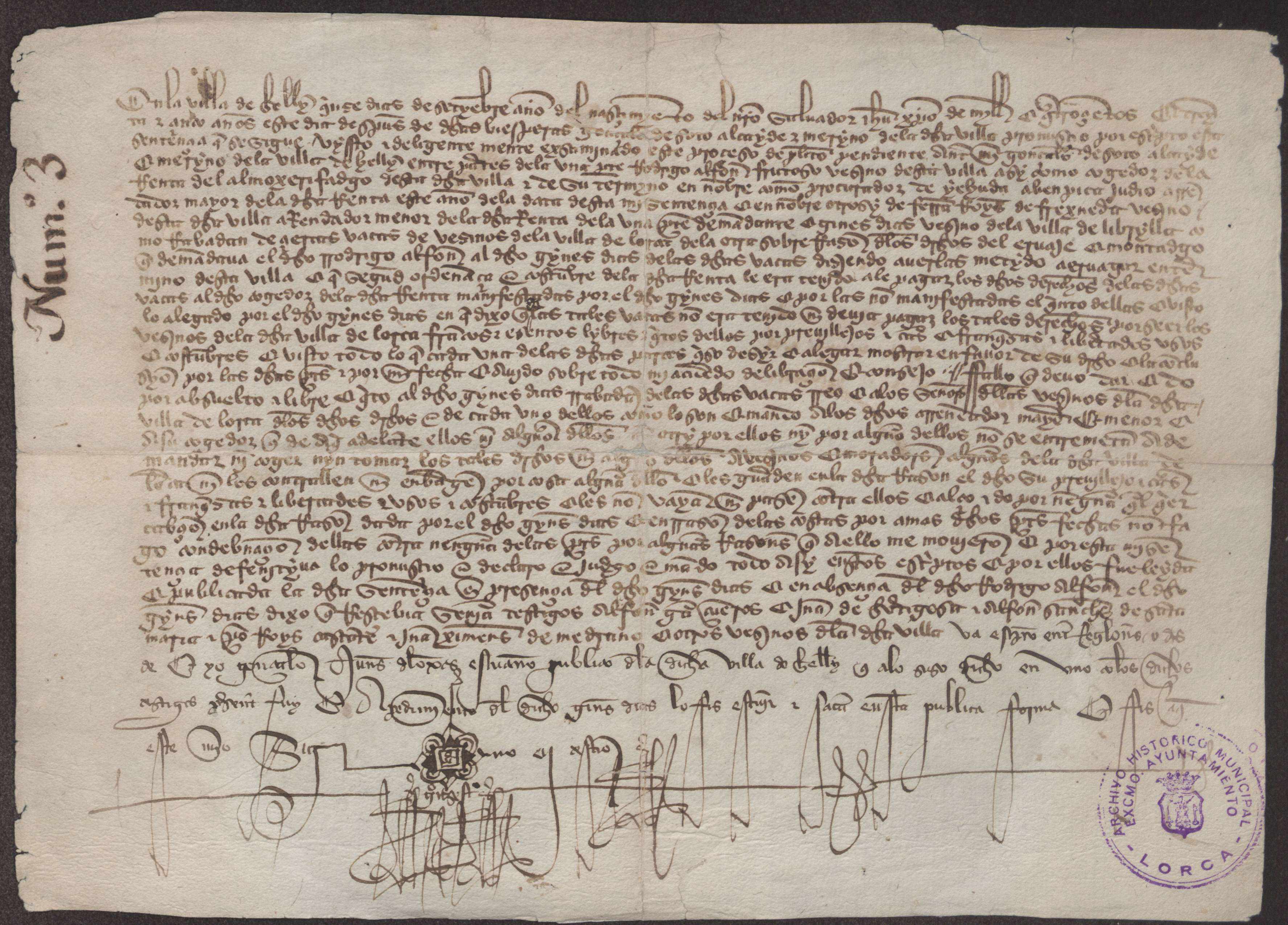 Pub. GARCÍA DÍAZ, I. : ''Documentáción medieval del Archivo Municipal de Lorca (1257-1504). Estudio y edición''. Editum, Ayto de Lorca y Academia Alfonso X el Sabio; Murcia, 2007; p.102-103