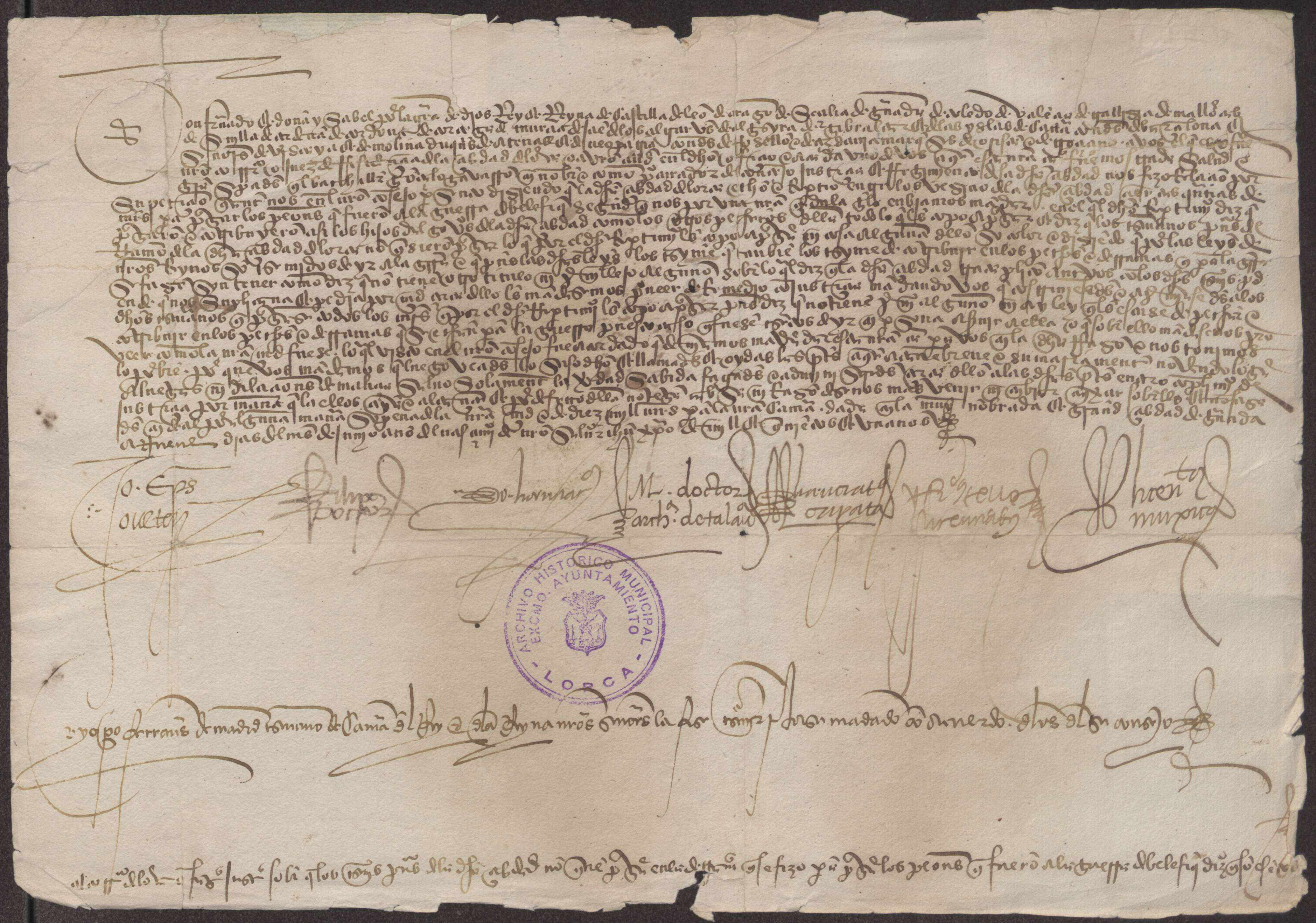 Los Reyes Católicos mandan al corregior de Lorca, ante las quejas del procurador Gonzalo Gabarrón, que ejerza justicia . Los escribanos públicos de la ciudad se habían negado a contribuir en la derrama, repartida entre todos los vecinos, para pagar el envío de unos peones a la guerra de Velefique, alegando que estaban exentos.