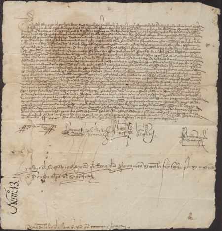 Los Reyes Católicos ordenan a todas la justicias de Andalucía que no impidan la compra de trigo a la ciudad de Lorca para su abastecimiento. Inserta una ley de Enrique IV, dada en la cortes de Córdoba de 1455, por la que prohibía cualquier tipo de vedamiento en las sacas del trigo para el abasteciemiento interno de su reino.