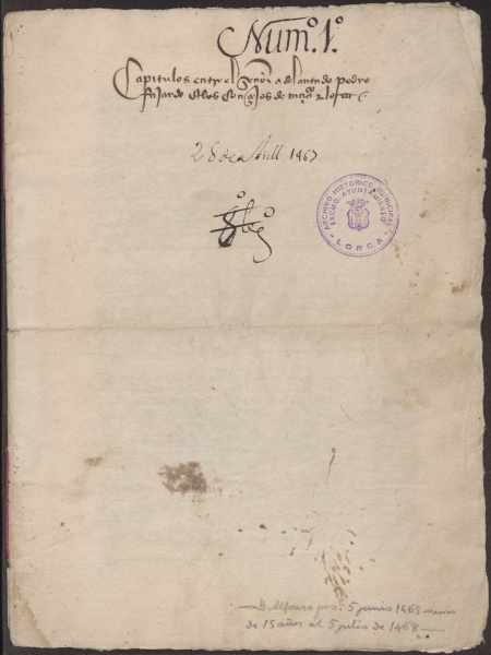 Acuerdo entre el adelantado y las ciudades de Lorca y Murcia para actuar de común acuerdo en el conflicto entre Alfonso XII y Enrique IV por la posesión de la corona castellana. Contiene:- Carta de Poder del concejo de Lorca a sus procuradores Martín Cañizares y Fernado Pérez de Tudela para negociar con el adelantado y el concejo de Murcia la manera de actuar en el conflicto entre Alfonso XII y Enrique IV.( 1467-4-17. Lorca), fol. 2r v- Juramento del adelantado. 3r- v.- Juramento del concejo de Murcia. 3r-4 r.