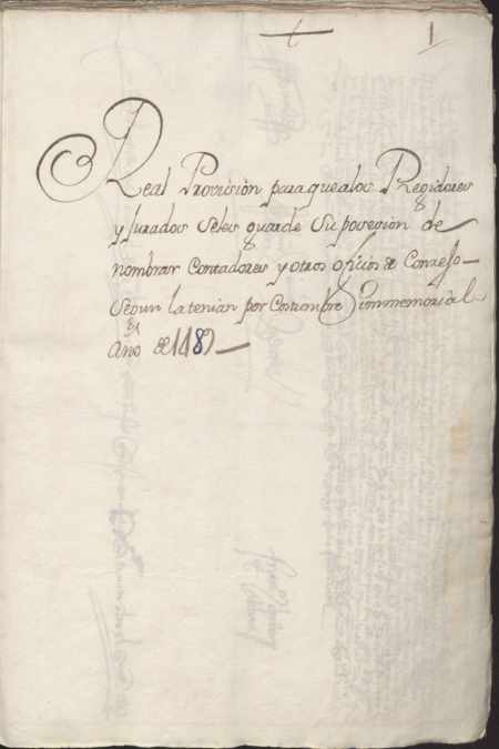 Los Reyes Católicos ordenan a Juan Cabrero, corregidor de Murcia, haga cumplir en Murcia el uso y costumbre que tienen los regidores y jurados de la ciudad de repartirse cada año los oficios de contadores y veedores de tintas.