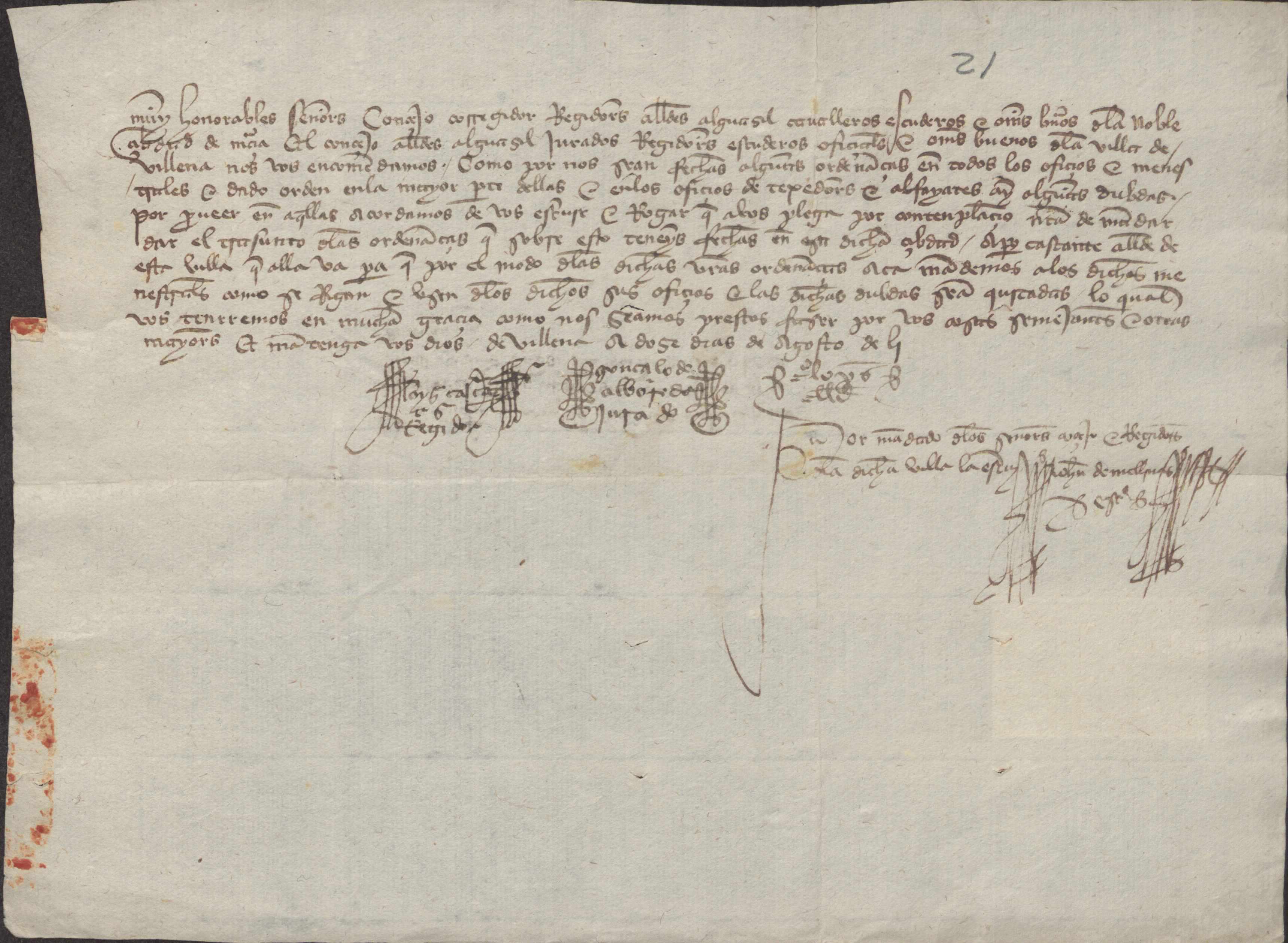 Carta del concejo de Villena al concejo de Murcia, solicitando traslado de las ordenanzas de esa ciudad sobre sastres y tejedores.