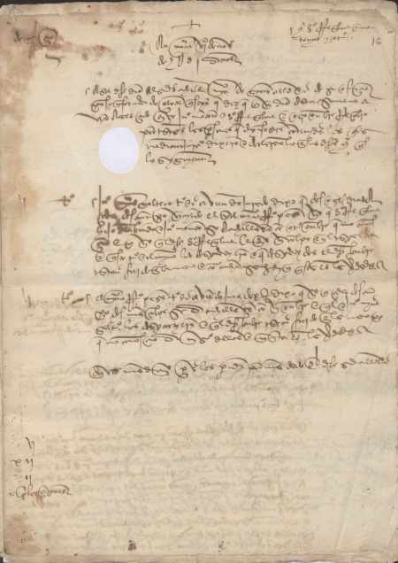 El documento contiene:- Proceso contra Isabel Méndez, acusada de haber calumniado a Catalina Ruiz. Es condenada a pagar la pena de la calumnia. (1501-3-22/1502-11-28. Murcia). Fol. 1r-2r- Proceso contra Pedro Ormín, acusado de haber calumniado y amenazado a Juana de Miralles. Es condenado a pagar la pena de la calumnia. (1501-11-22/1501-12-3. Murcia). Fol. 3r-v- Proceso contra Francisco Valiente, acusado de haber atacado a Juan de Miñón. Es condenado a pagar 100 maravedís para la obra del azud y a serle requisada la espada con la que atacó a éste. (1501-11-25/1501-12-3. Murcia). Fol. 4r-v- Proceso contra Martín de Oñate y su criado Sancho de Lezcano, acusados de haber atacado a Francisco de Aguilar. (1501-9-2/1501-9-13. Murcia). Fol. 5r-v- Proceso contra Diego Alonso, acusado de haber calumniado y agredido a Diego de Ávila. Es condenado a destierro durante 15 días. (1501-2-1/1501-2-24. Murcia). Fol. 7r-v- Proceso contra Gonzalo Gallego, acusado de apuñalar a un mancebo de Mula llamado Pedro. Es condenado a destierro durante 2 meses. (1502-3-17. Murcia). Fol. 8r-v- Proceso contra Violante Rodríguez y Francisco Osete, rufián. Condenados a destierro durante el tiempo que estime el alcalde. (Incompleto. ?/?-?-26. Murcia). Fol. 9r-v - Proceso contra el maestre Alfonso Guiallero, acusado de no querer pagar el diezmo a Francisco Bruenete. (1503-8-15/1503-8-25. Murcia). Fol. 10r-11r- Proceso contra Juan de Jaén, acusado de acuchillar a Francisco de Zamora. Es condenado a pagar 150 maravedís. (1501-5-26/1501-6-2. Murcia). Fol. 12r-13v- Proceso contra Diego de San Martín, acusado de agredir con una daga a Alfonso Caparrós. Es condenado a pagar 240 maravedís para la obra del azud. (1501-12-24/1502-1-9. Murcia). Fol. 14r-15v- Proceso contra Juan Monzón, acusado de acuchillar a Gonzalo Riquelme. Es condenado a destierro por el tiempo que haga falta. (1501-11-6/1501-11-18. Murcia). Fol. 16r-17v- Proceso contra Miguel de Trujillo, acusado de apalear a su hijo. Es condenado a pagar el dinero correspondiente a esta pena. (1504-7-23. Murcia). Fol. 18r-19r- Proceso contra Miguel Sánchez, acusado de agredir a Francisco Jaimez. Es condenado a pagar el dinero correspondiente a esta pena. (1504-6-18. Murcia). Fol. 20r-21r