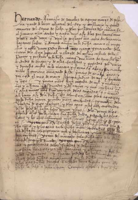 Declaratoria del Marqués de Pescara, avalando las cuentas presentadas por Pedro Bernal, gobernador de la Roca Imperial.