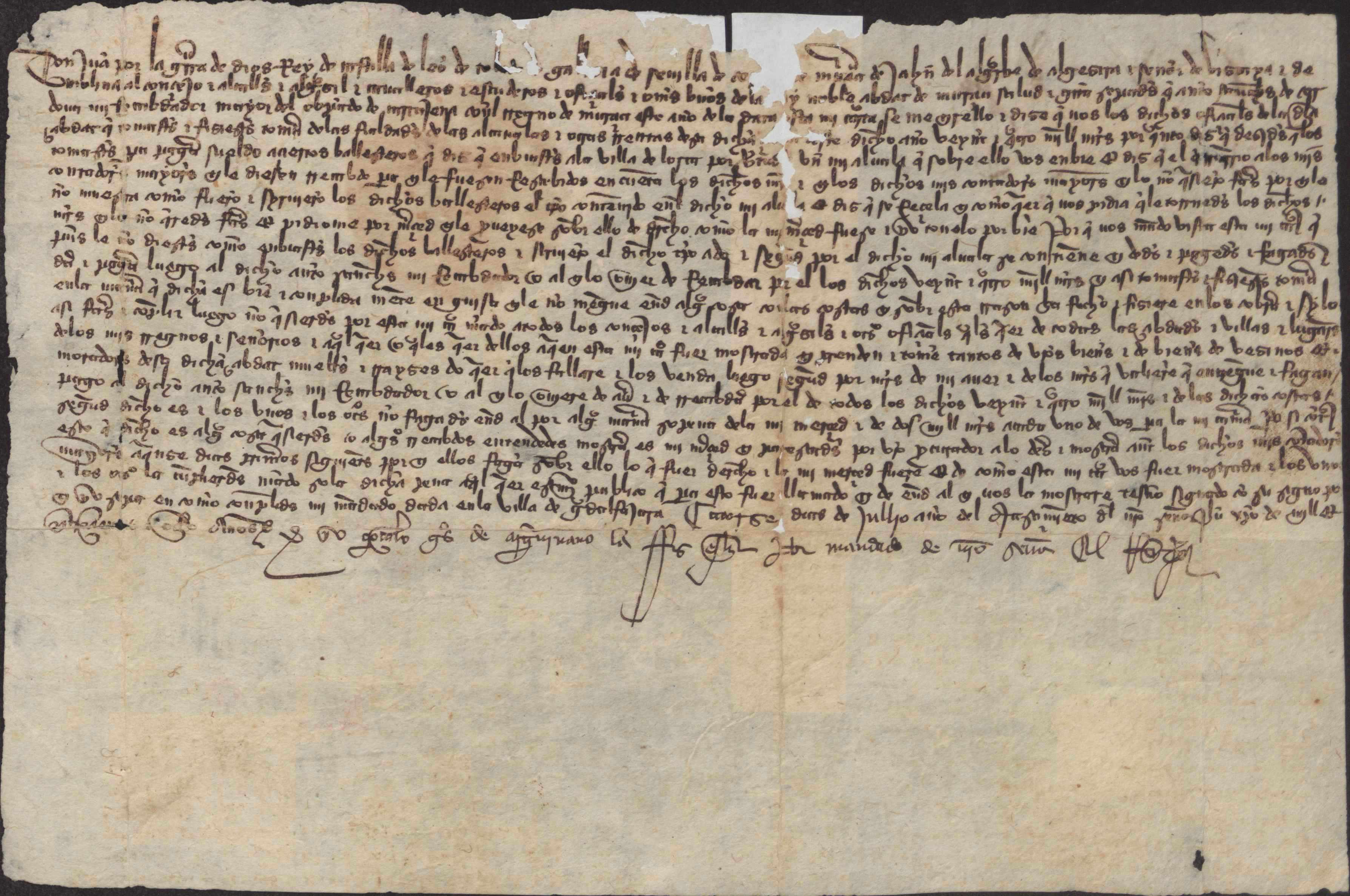 Juan II ordena al concejo de Murcia que se le paguen a Antón Sánchez de Córdoba, recaudador mayor del obispado de Cartagena con el Reino de Murcia, 24.000 maravedíes, que se le adeudan de la alcabala y otras rentas; dinero que la ciudad dice haber gastado en enviar ballesteros a la ciudad de Lorca por mandato del rey, pero que no ha justificado debidamente.