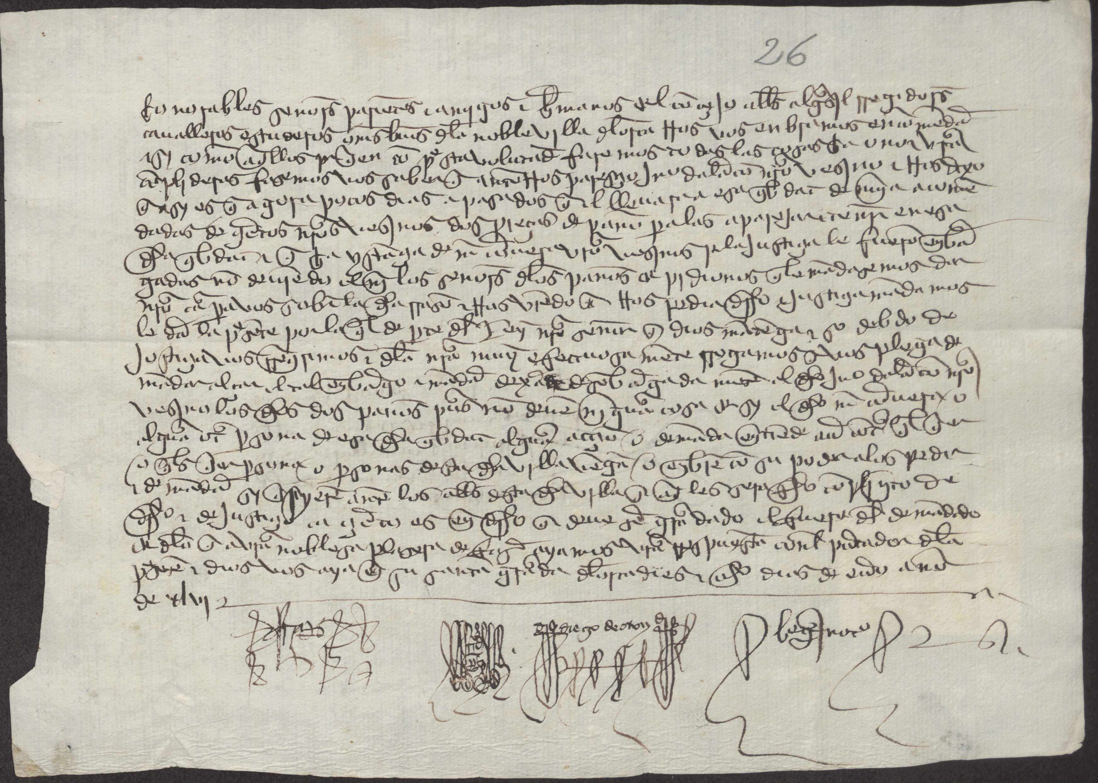 El concejo de Lorca se dirige al de Murcia para exigir que se levante el embargo injustamente impuesto a Juan de Alarcón, vecino de Lorca, de dos piezas de paños con las que había acudido a Murcia para teñirlas, y pide no se vuelva a repetir esta situación con los vecinos de Lorca.