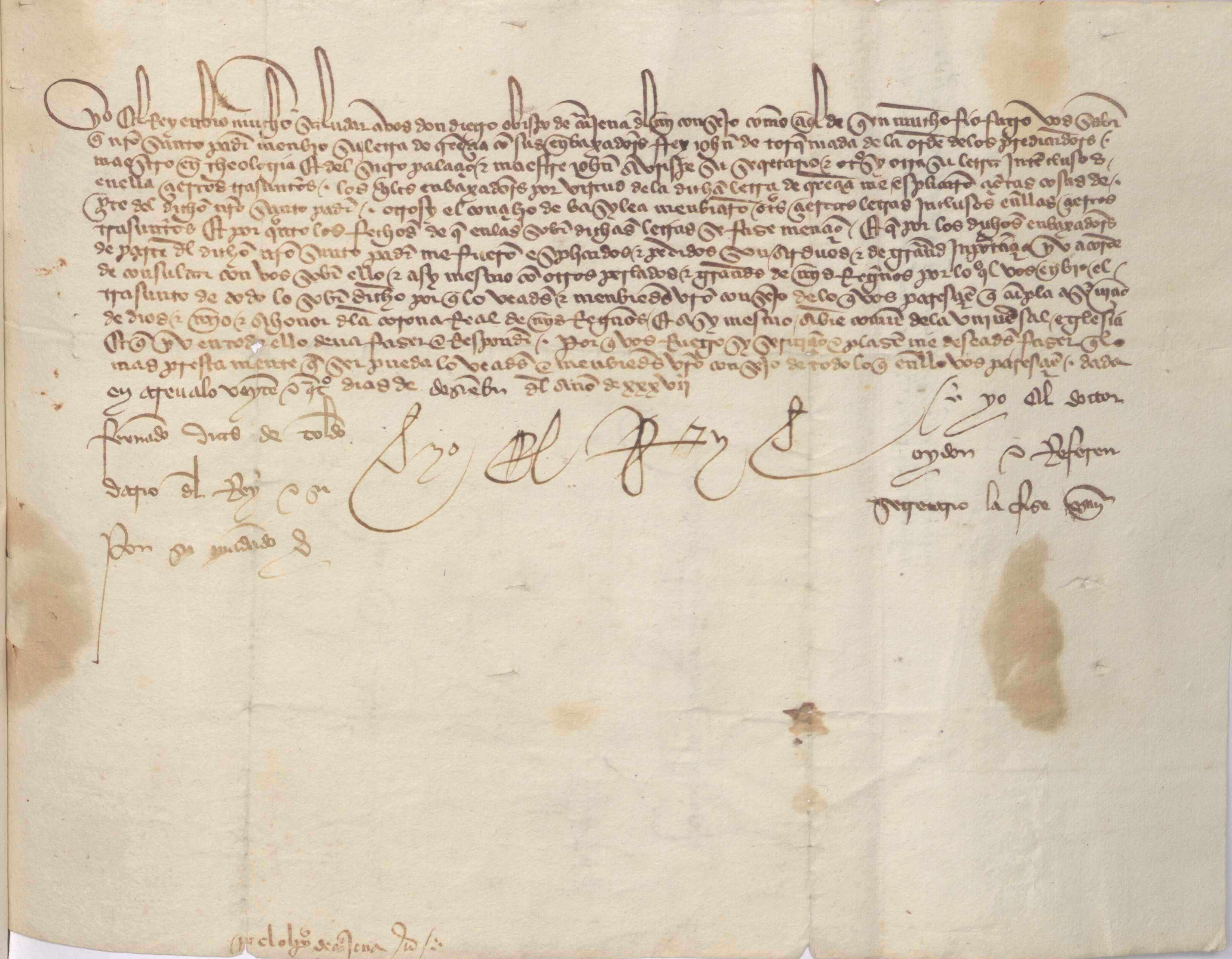 Juan II se dirige a Don Diego, Obispo de Cartagena, comunicándole haber recibido ciertas cartas del Papa, a través de sus embajadores fray Juan de Torquemada y el maestre Juan Aurispe, relativos al Concilio de Basilea y otros asuntos, y le pide su ayuda y consejo para responder a estas cartas.