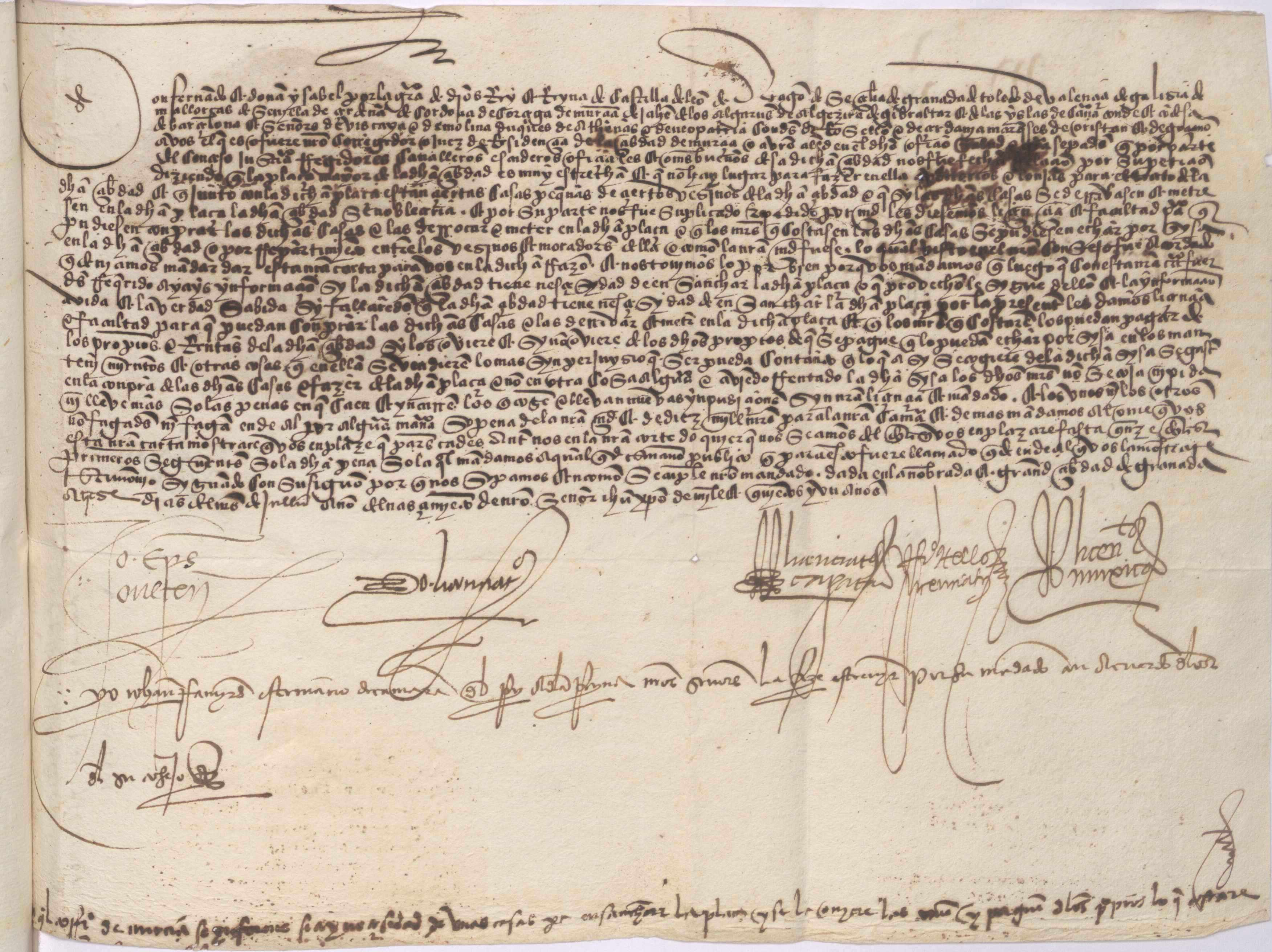 Provisión de los Reyes Católicos al Corregidor de Murcia ordenando investigue si es viable la petición del Concejo de ensanchar la plaza de Santa Catalina, y en caso afirmativo, autorizando dichas obras.