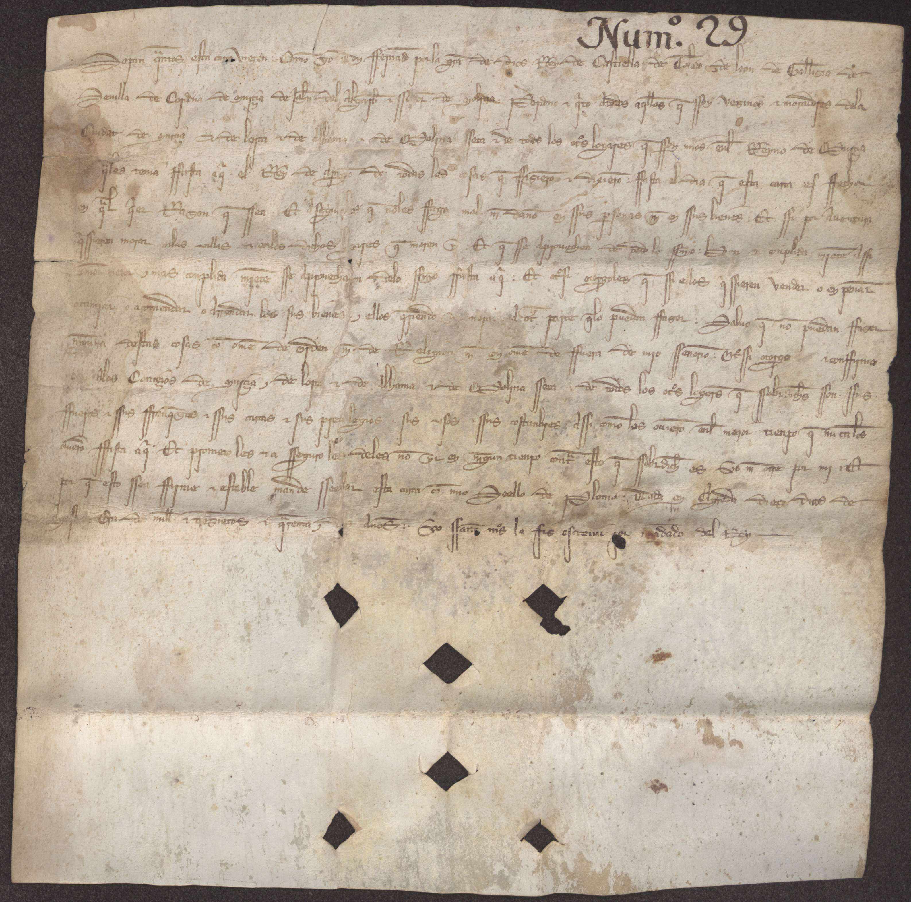 Fernando IV otorga perdón general a todos los vecinos de Murcia, Lorca, Alhama, Molina Seca y todos los otros lugares de realengo por el tiempo que han estado bajo el dominio de Aragón y les confirma sus fueros privilegios, franquezas, usos y costumbres.