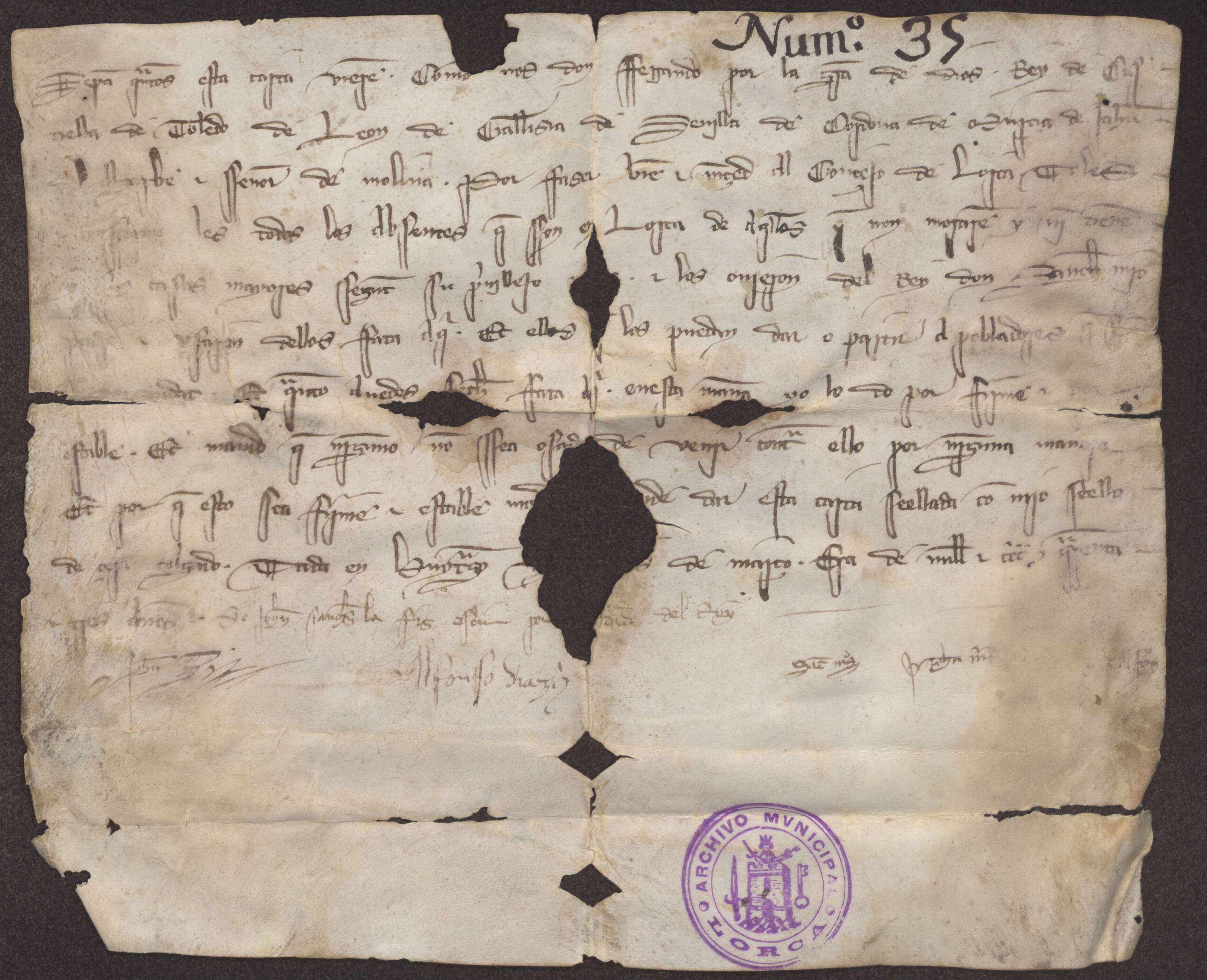 Pub. CANOVAS COBEÑO, FRANCISCO. Historia de la ciudad de Lorca. Lorca: Imprenta el Noticiero, s.f. [Cc. 1890], p. 228. TORRES FONTES, JUAN. Documentos de Fernando IV. Murcia: Academia Alfonso X El Sabio, 1980, p. 48.
