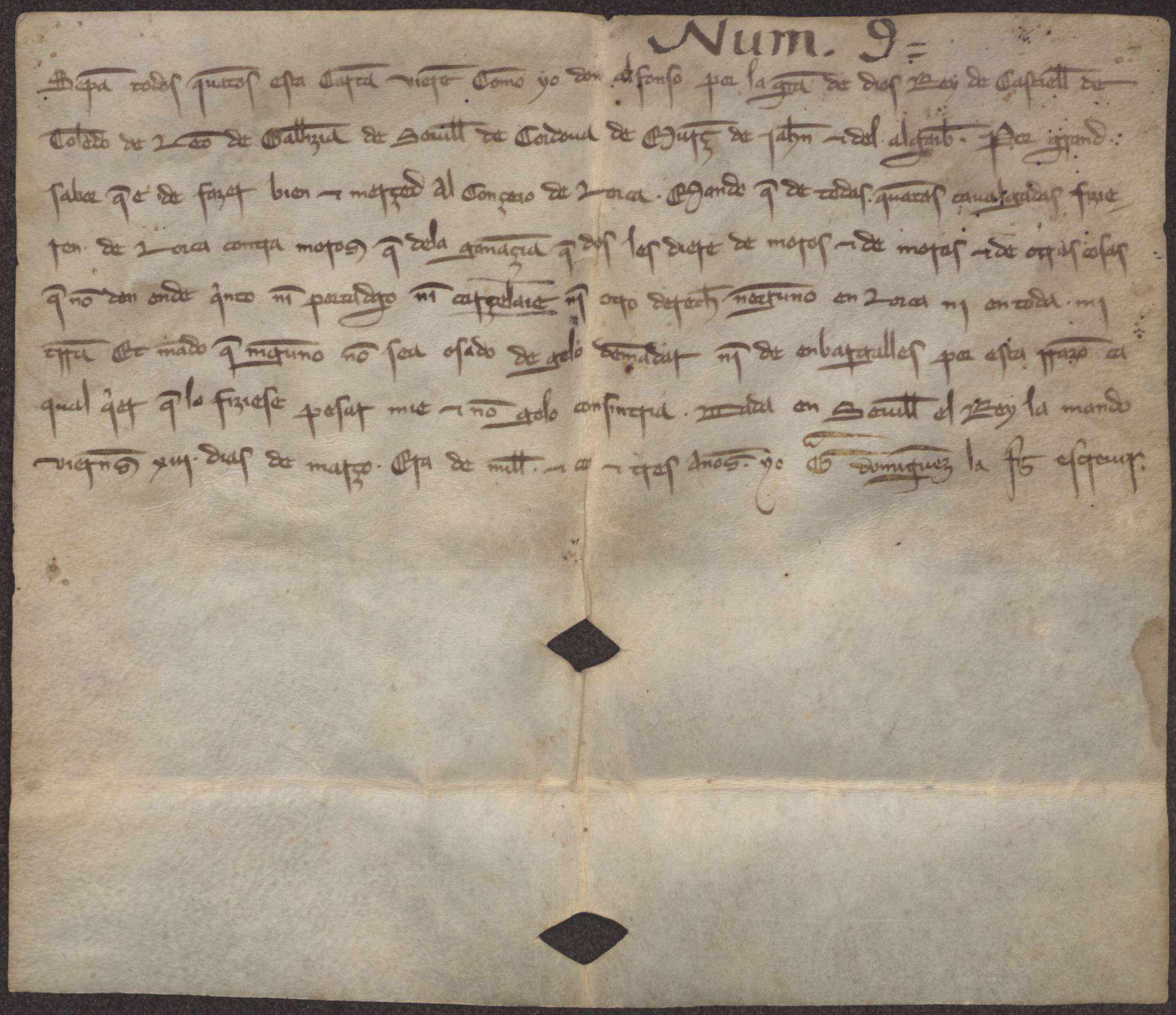 Carta abierta de Alfonso X al concejo de Lorca, eximiéndoles de cualquier impuesto sobre las ganancias de las cabalgadas contra los musulmanes.