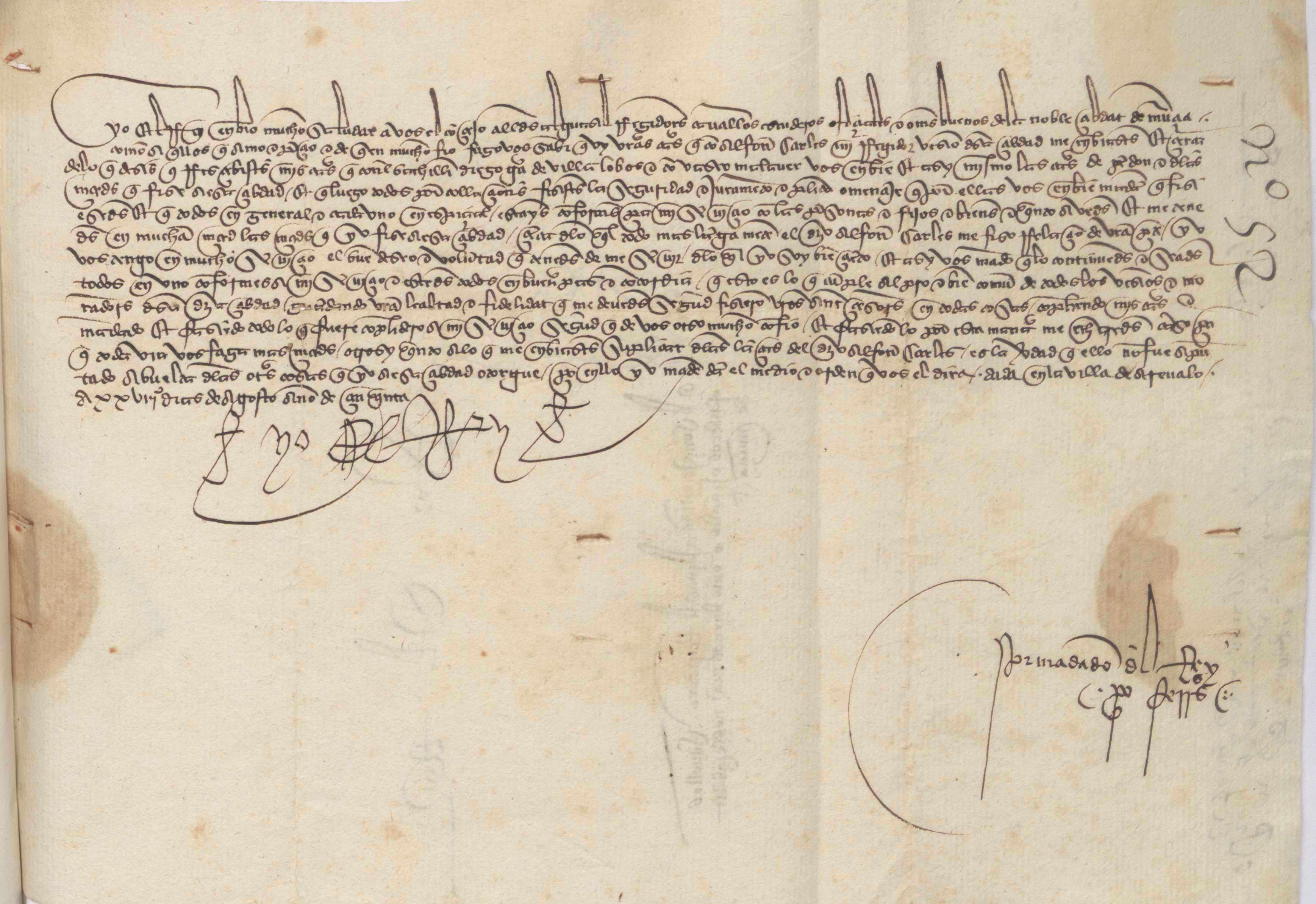 Carta misiva de Juan II al Concejo de Murcia, comunicando haber recibido a Alfonso Carles y agradeciendo la lealtad y fidelidad de la ciudad.