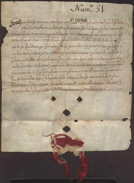 Carta plomada de Alfonso X al concejo de Lorca, confirmando la partición de casas y heredamientos hecha por sus partidores.