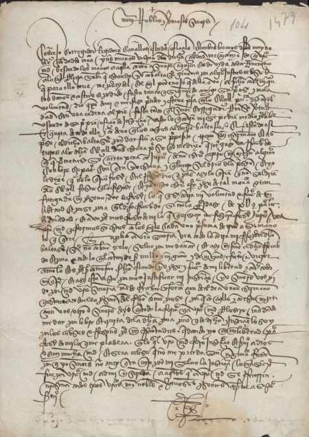 Inés Muñoz explica al concejo de Murcia cómo Baltasar Genovés, hizo que la prendieran y encarcelaran, alegando que le había sido infiel y cómo estando presa, le exigía juramento de no estar nunca con Lope Zapatero, comprometiéndose a pagar 10.000 maravedís a la hermandad si no lo hacía. Pide al concejo que no tenga en cuenta el juramento, ya que lo realizó presionada por su amante, que le aseguraba que esa era la única manera de conseguir la libertad, y que por tanto no le demanden la cantidad que se comprometió a pagar en caso de engaño.