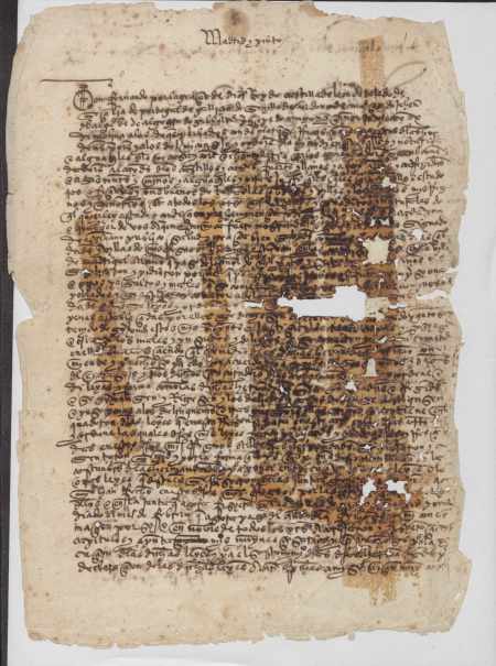 Fernando el Católico confirma todas la leyes y ordenamientos hechos y promulgados en la Junta general de la Santa Hermandad que se celebró en las villas de Pinto y Madrid ( 1468-2-15? ). Documento incompleto.