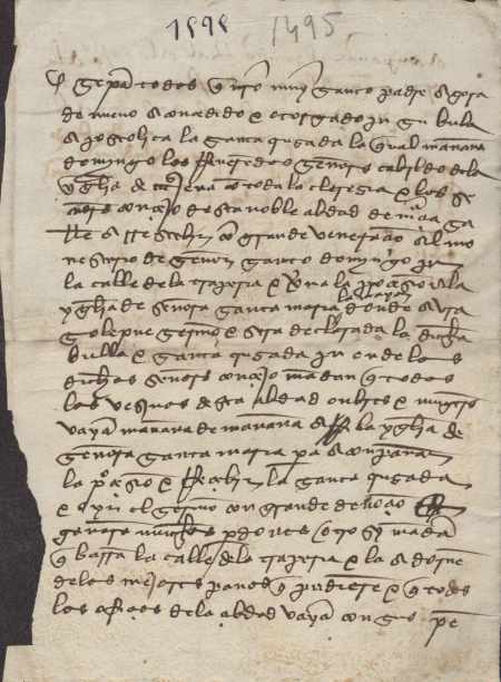 Pregón para convocar a todos los ciudadanos a la misa de proclamación de la cruzada, otorgada por bula del Papa, y a la procesión que irá desde la catedral a la iglesia de Santo Domingo. Ordena limpiar la calle de la Trapería y engalanarla y que los oficiales del concejo acompañen al pendón real.