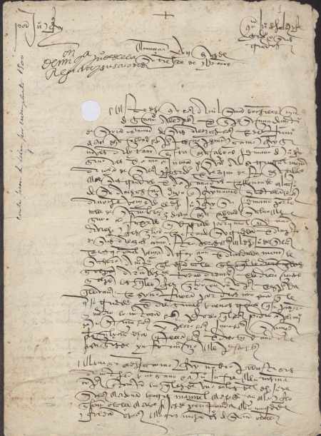 El documento contiene:- Testimonio de la querella presentada ante el alcalde Martín de Gante por parte de Iacomo Rey, en nombre de su hermano Juan Rey, genoveses, contra el regidor Juan de Selva y sus criados. Manifiesta que andando su hermano por la calle fue atacado violentamente por éste y sus hombres, ante lo cual exige se haga justicia. (1500-9-17. Murcia). Fol. 1r- Declaración de Juan Jufre y Mateo Burgano, testigos presentados por Iacomo Rey, que relatan cómo Juan Rey sufrió un ataque por parte de Juan de Selva y sus criados. (1500-9-17. Murcia). Fol. 1v- Juan Rey exige al alcalde se haga justicia ante este hecho. Éste ordena a Juan de Selva que se presente ante él, y que mientras tanto sus criados sean encarcelados. (1500-9-28. Murcia). Fol. 1v- Juan de Selva se presenta ante el alcalde en la cámara del concejo y paga 1.000 maravedís como fianza. (1500-9-30. Murcia). Fol. 1v- El alcalde se dirige a la casa de Juan de Selva, que encuentra cerrada, y comunica a sus criados que éste debe presentarse de nuevo en la cámara. (1500-10-2. Murcia). Fol. 2r- El alcalde ordena hacer un pregón público, que ordena a Juan de Selva presentarse en la cámara del concejo. (1500-10-3. Murcia). Fol. 2r- Juan Rey vuelve a manifestar ante el alcalde su querella contra Juan de Selva. (1500-10-7. Murcia). Fol. 2r- El alcalde Martín de Gante da poder al fiscal Álvaro de Solís para que prosiga la causa, el cual ordena hacer un pregón público que ordena a Juan de Selva presentarse en la cámara del concejo. (1500-10-14. Murcia). Fol. 2r- Juan de Selva se presenta ante el concejo, acatando la sentencia que ha de dar éste, el cual le ordena que durante 20 días no podrá salir de su casa. (1500-12-11. Murcia). Fol. 2v- Juan de Selva explica que atacó a Juan Rey debido a los menosprecios y calumnias que éste profería contra su señor el arcediano. El alcalde Martín de Gante le prohíbe que abandone la ciudad. (1501-2-3. Murcia). Fol. 2v