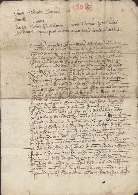 Petición de Juan de Medina al concejo de Murcia, solicitando convenga con el concejo de Orihuela la venida de los testigos que han de declarar en su querella contra Gaspar Vicente.
