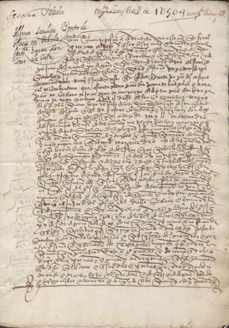 Fernando Guerau, vecino de Murcia, vende unas tierras de secano a Alfonso Sánchez, también vecino de Murcia, ubicadas en Tabala, por una cantidad de 1.000 maravedís de dos blancas.