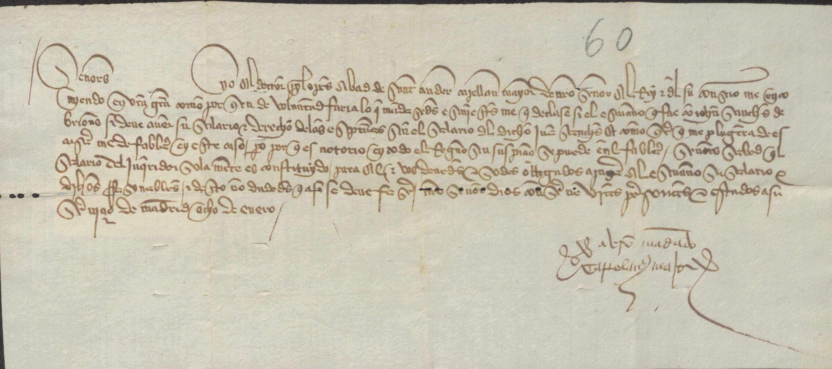Pedro López, abad de San Andrés y capellán mayor del rey, responde al concejo de Murcia que deben pagar el salario correspondiente al escribano que fue con Juan Sánchez. Fechada el 8 de enero.