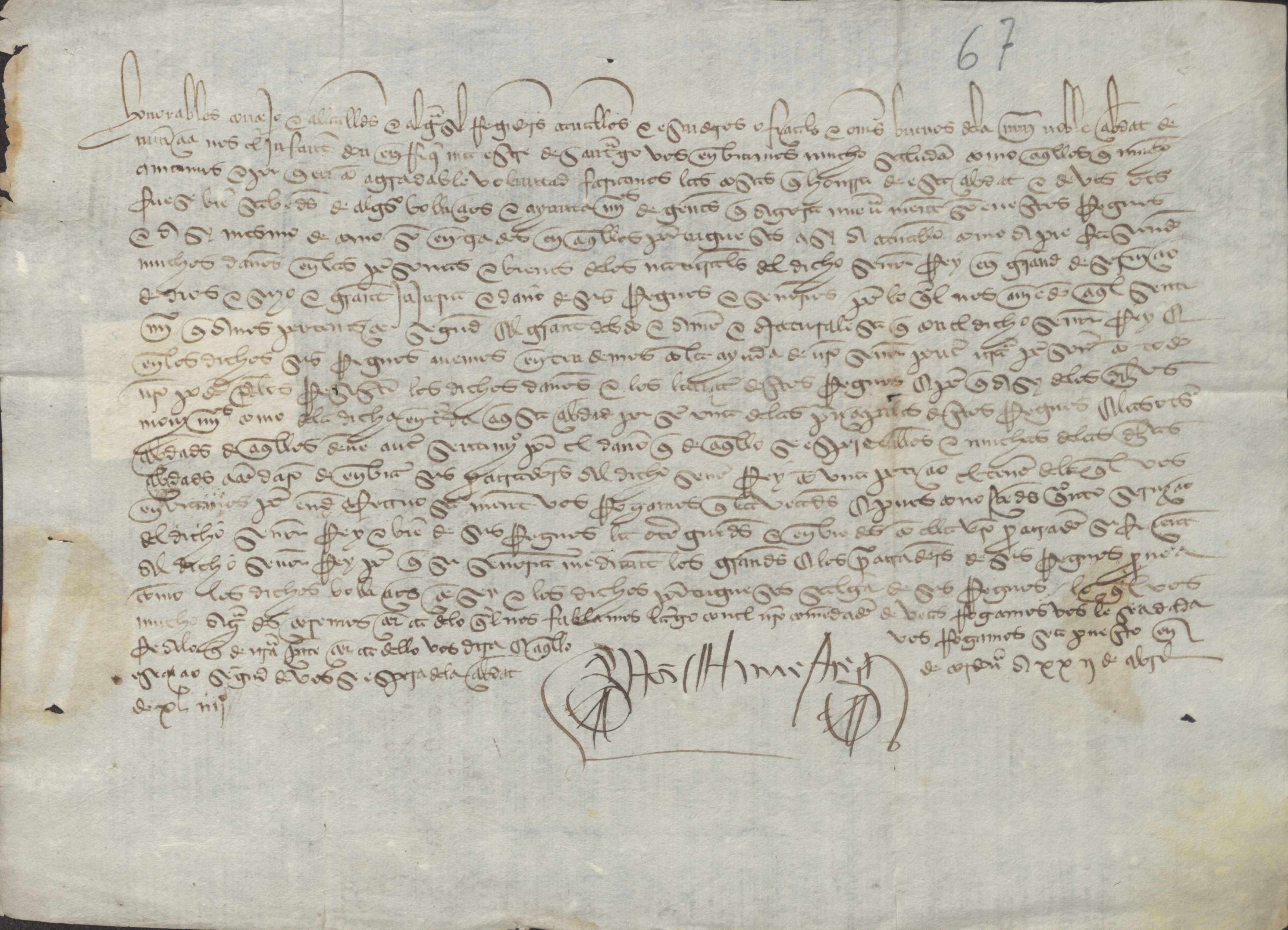 El infante Enrique de Aragón, maestre de Santiago da cuenta de las revueltas que azotan Castilla, a lo que se añade una invasión portuguesa. Por todo esto se dicidió enviar una petición de las ciudades al rey, la cual les envía, les pide que la vean y junto con ella envíen su procurador al rey para poder resolver la situación. Da fe y creencia al comendador de Veas para hablar con el concejo.