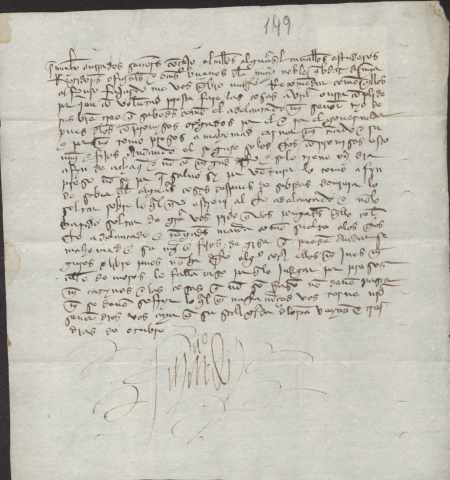 Alfonso Fajardo se dirige al concejo de Murcia para pedir que interceda ante el Adelantado para liberar a Mahomad Carnal, su criado, que se encuentra preso junto a su mujer e hijos en poder de éste, sin haber cometido delito alguno. Fechada el 23 de octubre, mediados del s. XV.