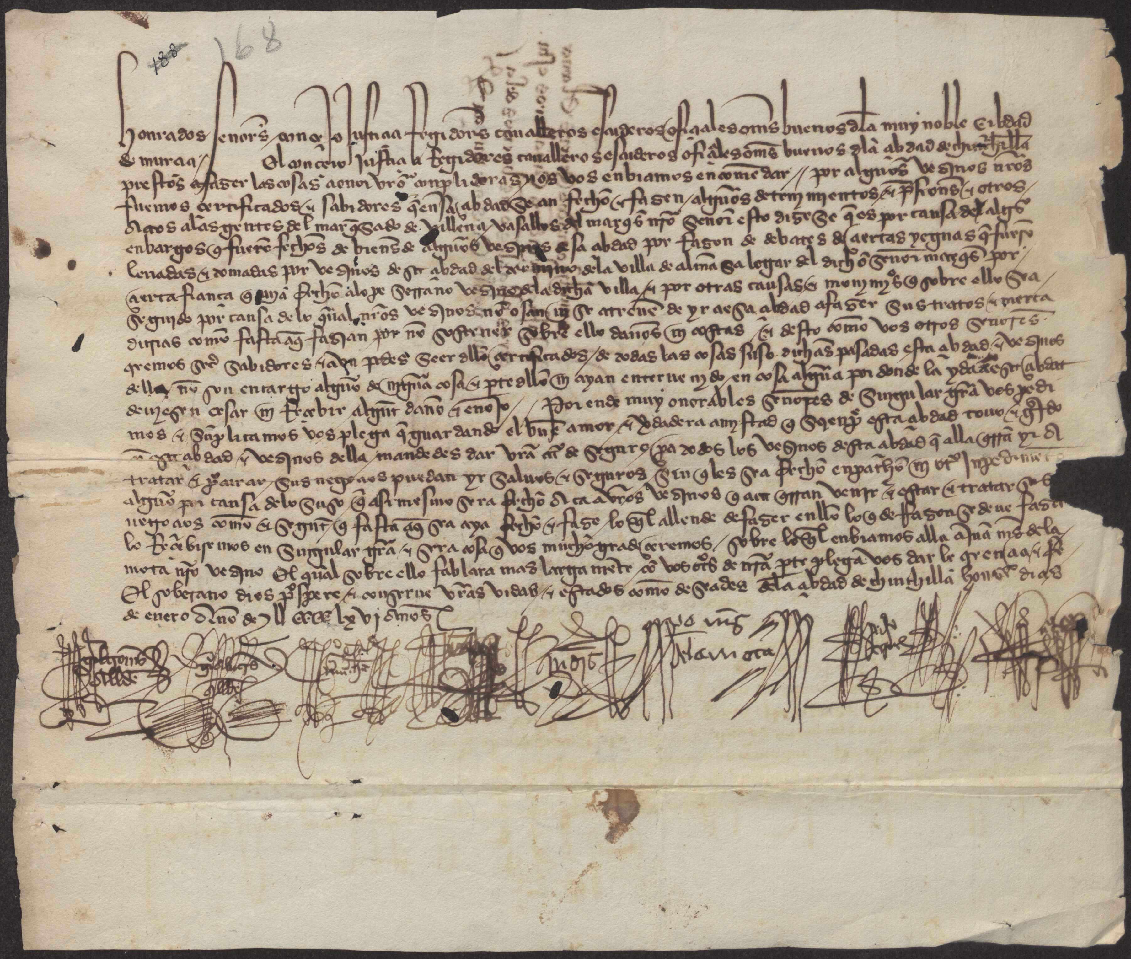 Carta del concejo de Chinchilla al concejo de Murcia sobre los agravios ocasionados por algunos vecinos de Murcia