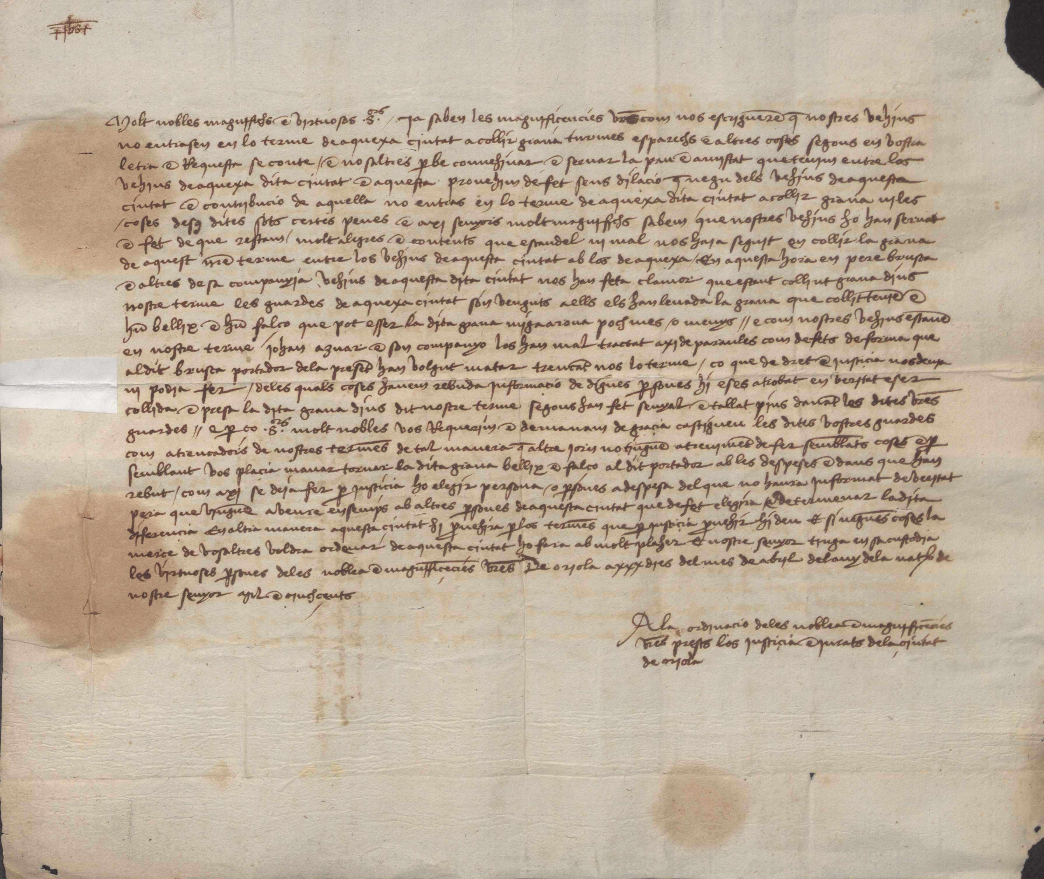 Carta del concejo de Orihuela al concejo de Murcia sobre el robo de grana a varios vecinos de Orihuela.