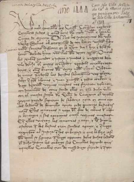 El concejo de Elche da respuesta a una carta enviada por el concejo de Murcia, que se inserta (1445-8-24. Murcia) en la que les informaban del robo de ciertas bestias que algunos vecinos de Murcia sufrieron en Elche por parte de gente procedente de Abanilla. Solicitaban su devolución, ya que una vez tomadas a los ladrones, no les habían sido devueltas a sus vecinos ya que se alegó que las dichas bestias habían sido tomadas a Mosén Diego Fajardo. El concejo de Elche comunica al concejo de Murcia que no tiene constancia de que vecinos de Elche se hayan apropiado de las acémilas, pero que si así fuera, les serían devueltas de inmediato.