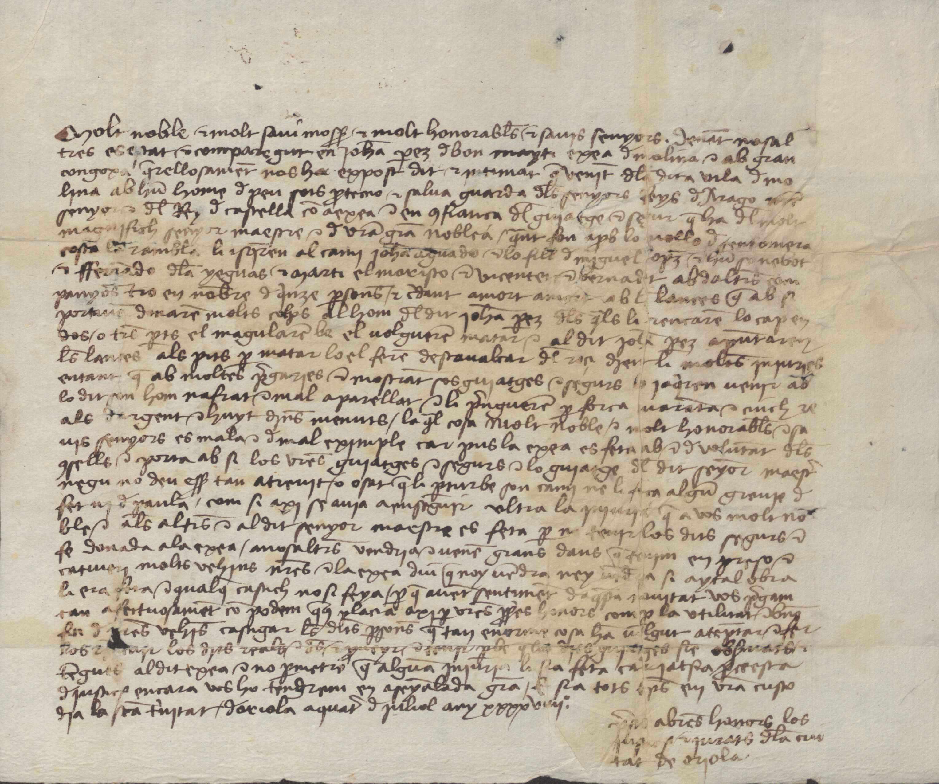 Carta del concejo de Orihuela al concejo de Murcia, sobre el asalto cometido por ciertos vecinos de Murcia sobre Juan Pérez de Bonmatí, alfaqueque.