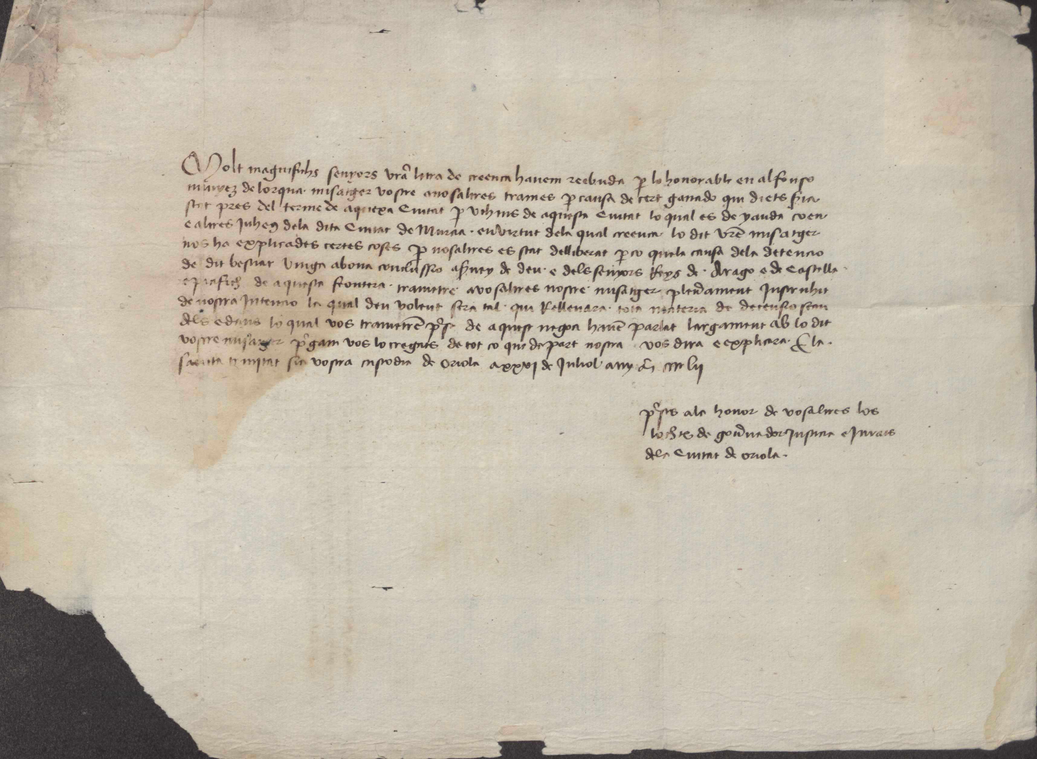 Carta del concejo de Orihuela al concejo de Murcia, sobre el ganado tomado en Murcia por vecinos de Orihuela.