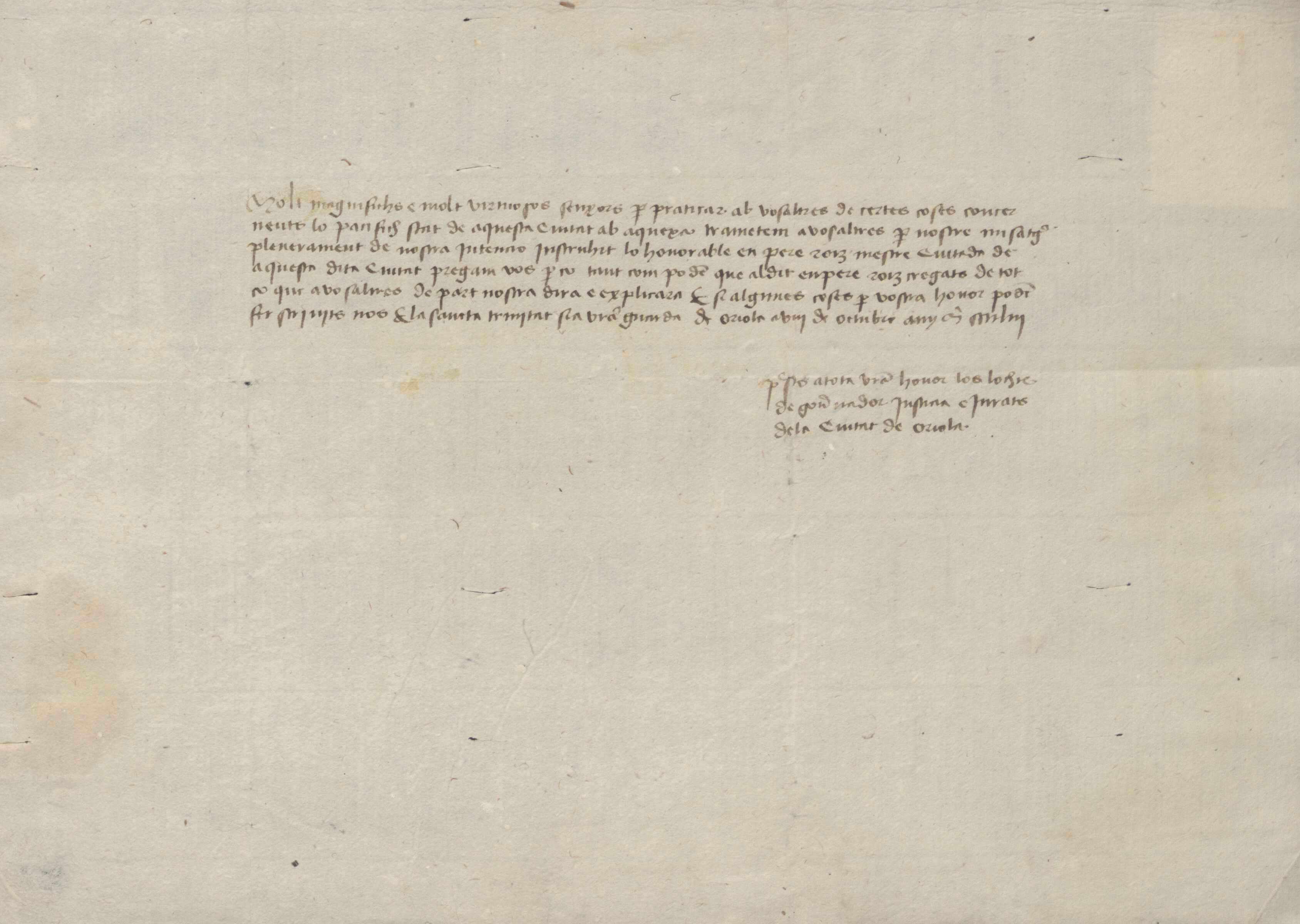 Carta del concejo de Orihuela al concejo de Murcia, comunicando que envía como mensajero a Pere Ruiz.