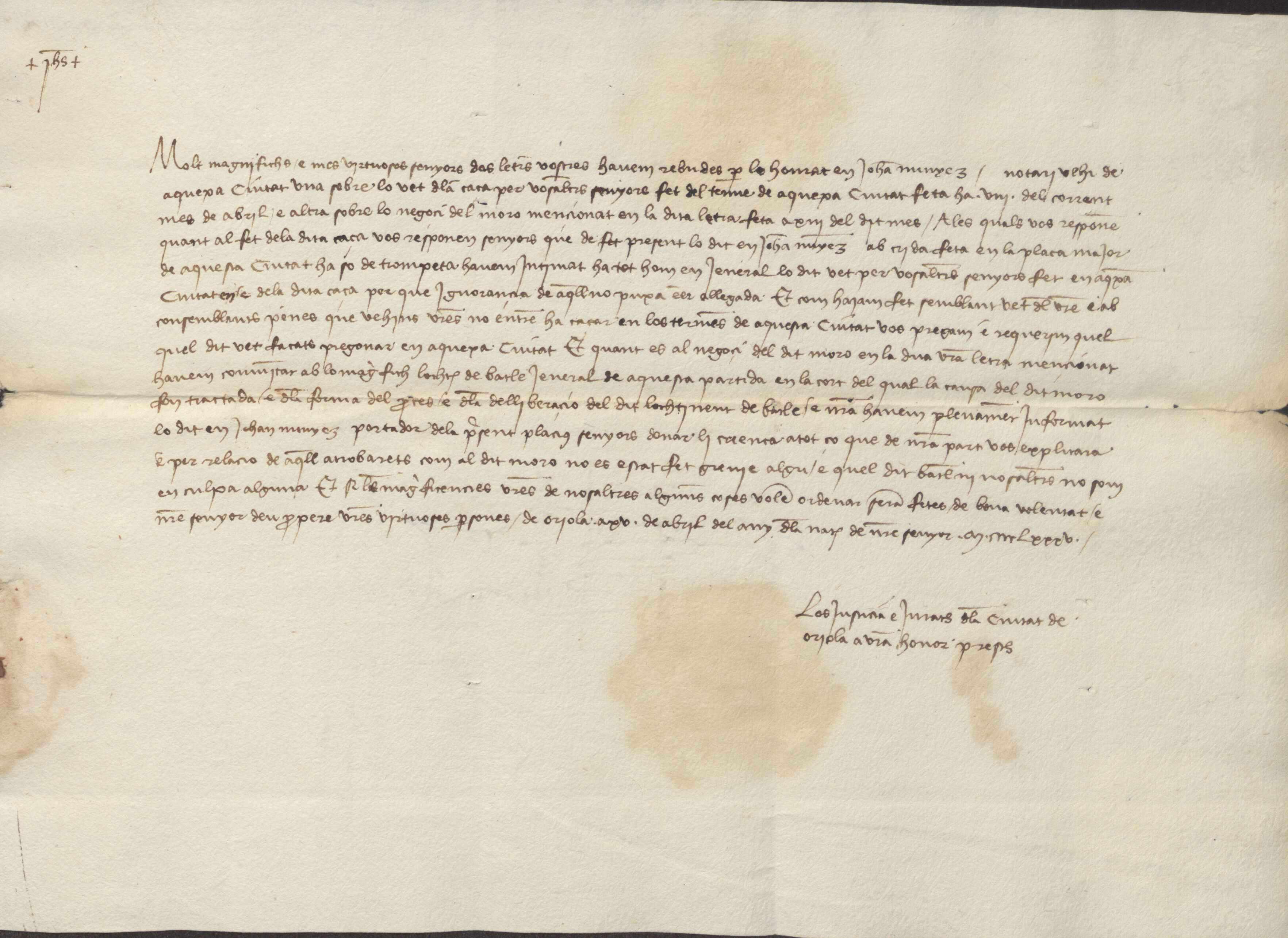 Carta del concejo de Orihuela al concejo de Murcia sobre la veda de caza y el asunto que seguían sobre un moro.