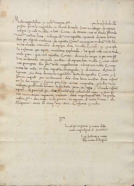 Carta del concejo de Alicante al de Murcia, sobre los insultos vertidos a ciertos vecinos de Alicante en Los Alcázares.