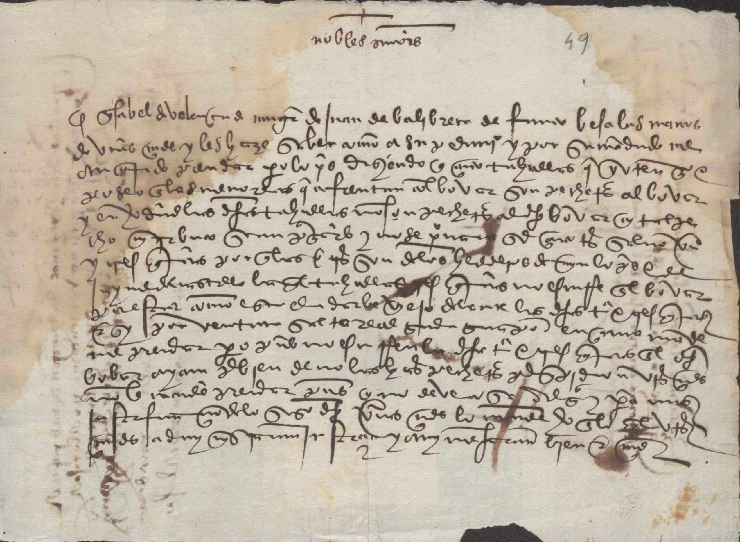 Petición de Isabel de Valencia al concejo de Murcia, solicitando no considere pecheras cinco tahúllas que posee en las Menoretas.
