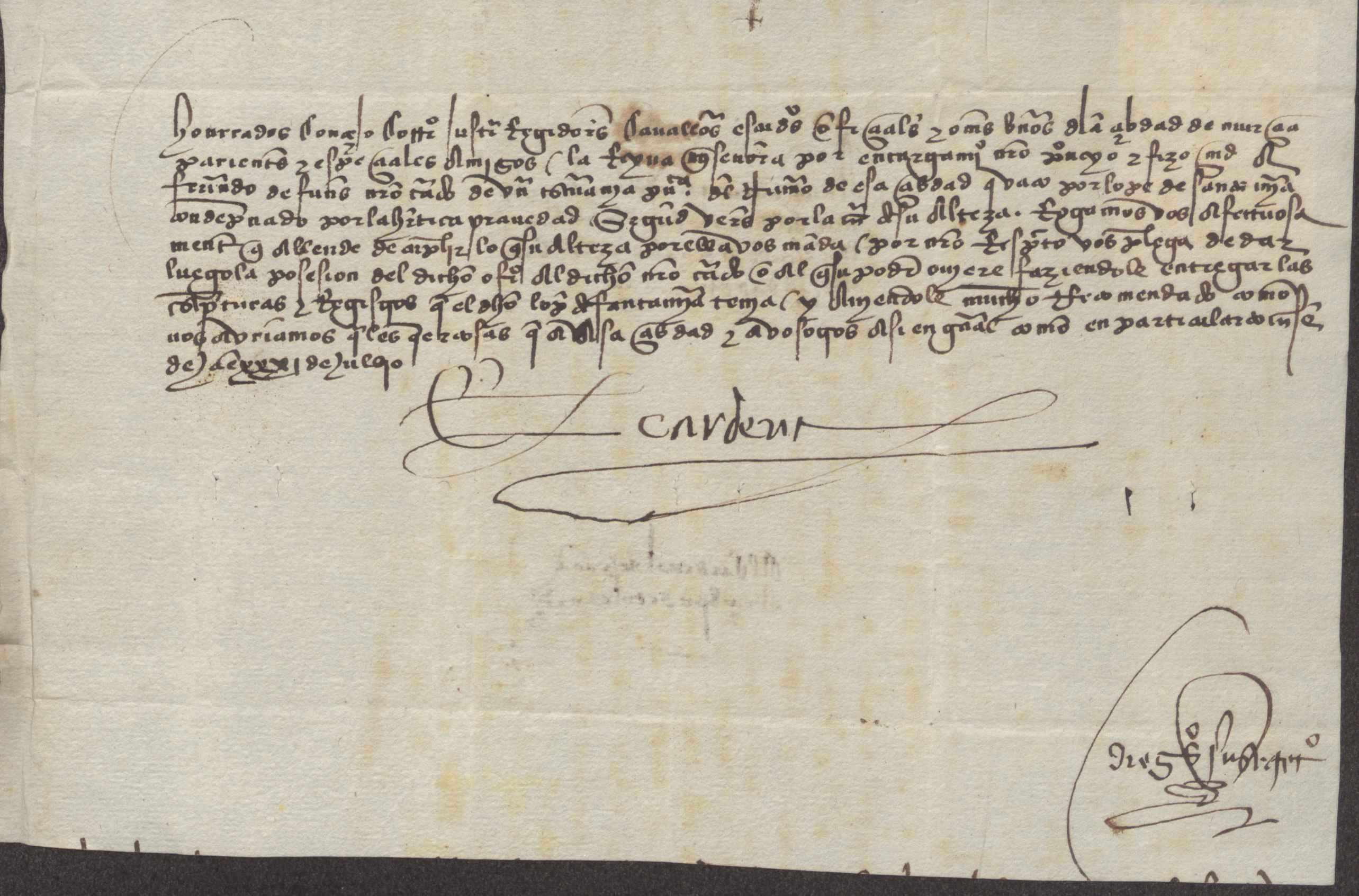 Carta del Arzobispo de Toledo al concejo de Murcia, comunicando el nombramiento de Fernando de Funes como escribano público en puesto de Lope de Santa María.