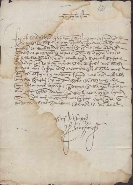 Gutierre de Herrera, alcaide de Cartagena, comunica al concejo de Murcia haber recibido sus cartas y habérselas entregado al alcalde, y manifiesta que servirá en todo lo que pueda los requerimientos de Murcia. Fechada el 8 de diciembre.