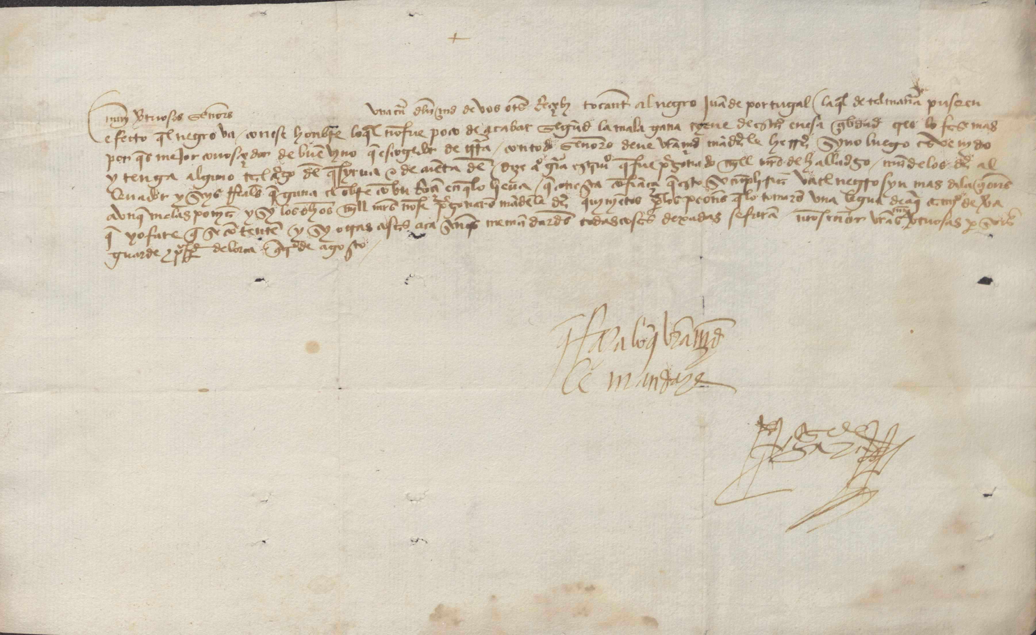 Se comunica al concejo de Murcia que el esclavo negro Juan de Portugal marcha a Murcia con un vecino de Lorca que lo ha capturado camino de Vera, al cual si no se le quiere dar 1000 maravedís, como se había pregonado, se le de 500 como recompensa. Fechada el 4 de agosto, finales del s. XV