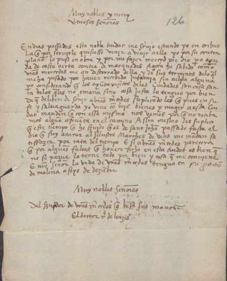 El doctor Rodrigo de Loaces se dirige al concejo de Murcia para manifestar cómo viviendo él en Orihuela fue llamado por el concejo de Murcia para que se afincase y trabajase en esta ciudad, lo cual hizo hasta que fue condenado a destierro. Solicita al concejo revise esta condena, y en caso de ratificarla, asegure la defensa de su persona y sus bienes cuando abandone la ciudad.