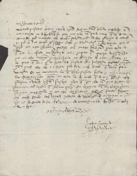 Tristán de Villaverde se dirige al concejo de Murcia para quejarse que no está recibiendo todo lo que debiera por su trabajo por los intereses de la ciudad en la provincia de Calatrava, y pide un mejor trato de acuerdo con su dedicación y esfuerzo a favor de la ciudad, tal y como puede manifestar Pedro Saorín. Fechada el seis de abril.