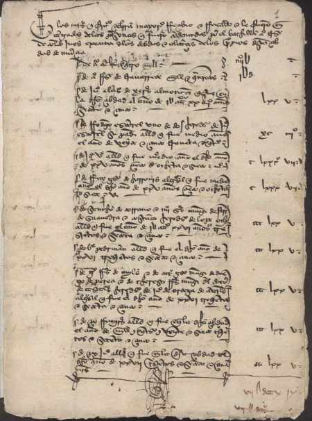 - Cuentas de los deudores recibidas por Francisco Celdrán (Fol. 1r-2v) y Mateo de Navarrete (Fol. 6r).