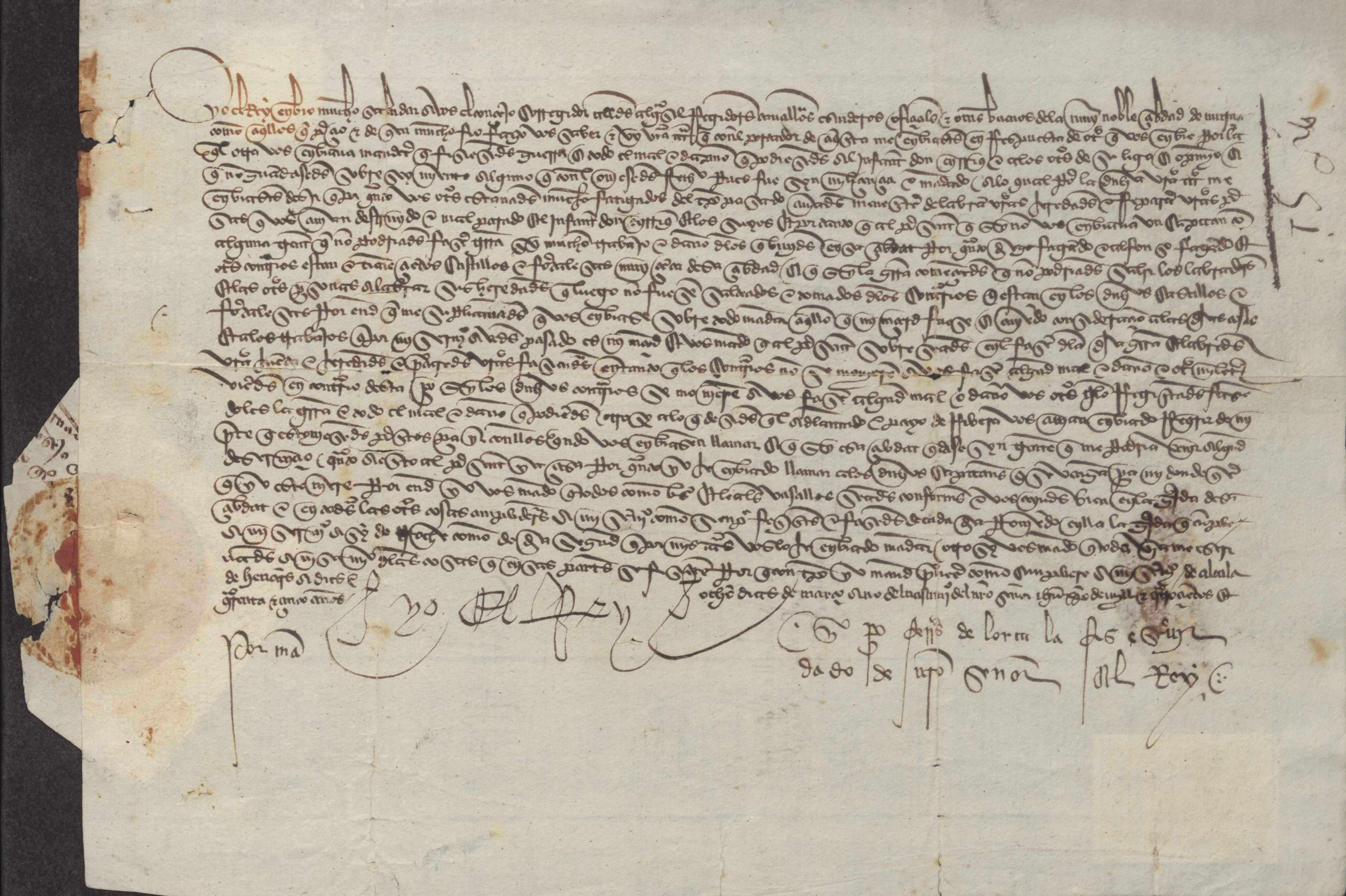 Carta misiva de Juan II al concejo de Murcia, permitiéndoles detener el combate pero que guarden bien la ciudad y le avisen de cualquier novedad.