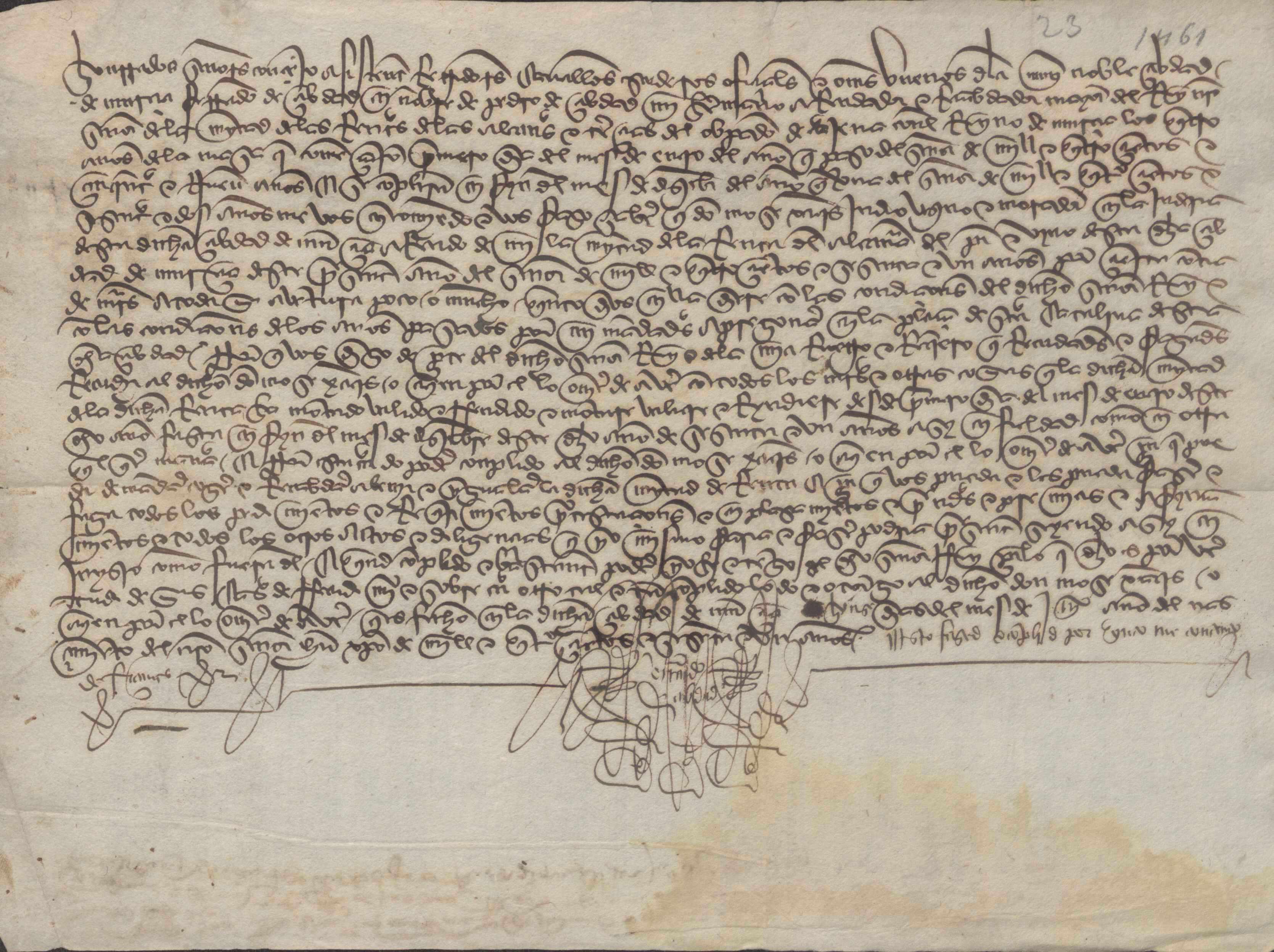 Carta de Fernando de Ciudad al concejo de Murcia, comunicando el arrendamiento por Mosé Axaques de la mitad de la renta de la alcabala del pan y del vino de la ciudad.