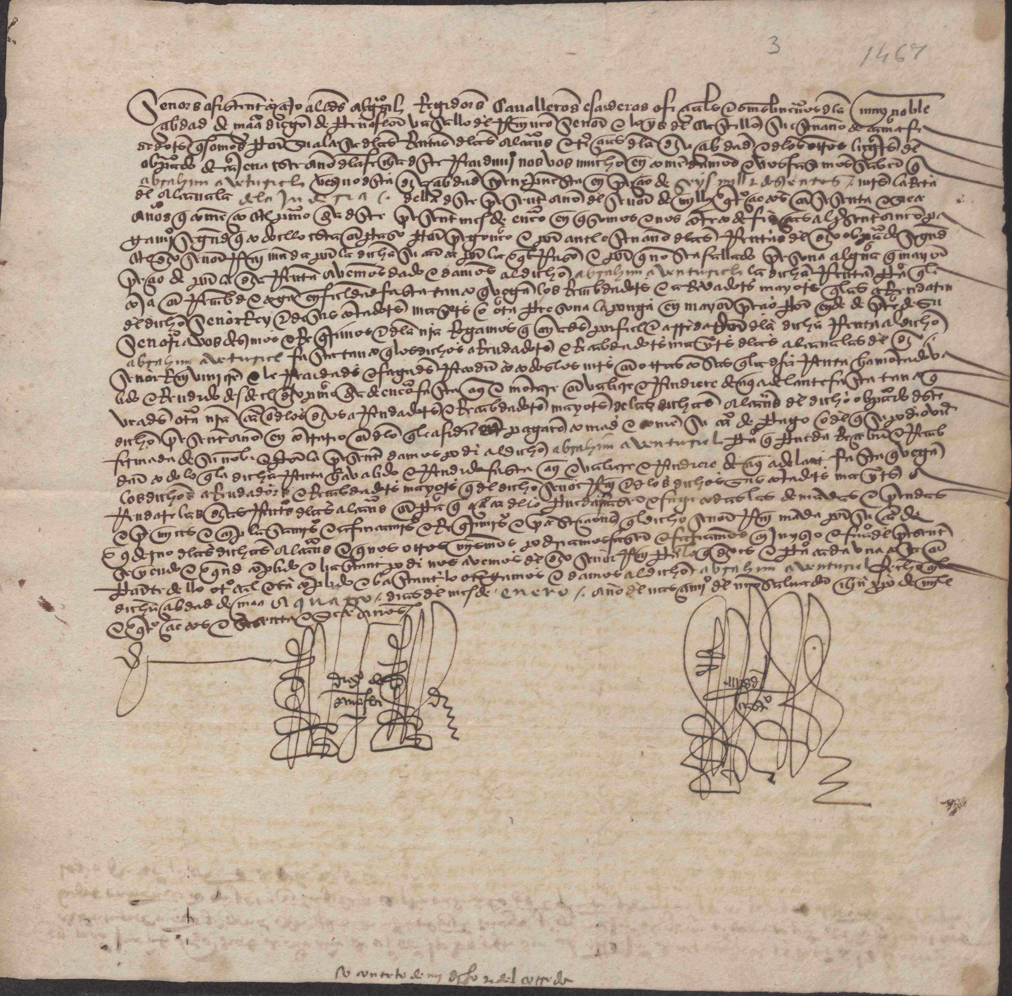 Carta de los hacedores de las rentas de las alcabalas y tercias de Murcia al concejo de Murcia sobre el arrendamiento de la alcabala de la judería de la ciudad del año 1467