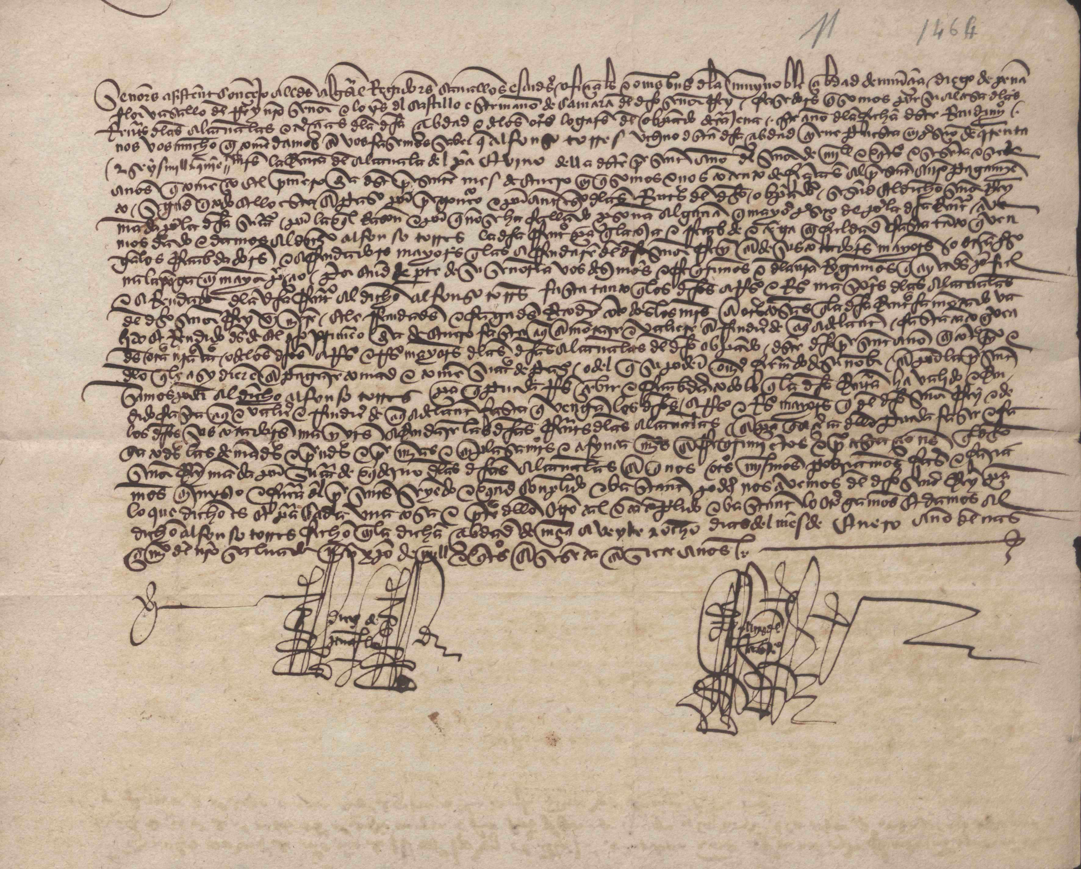 Carta de los hacedores de las rentas de las alcabalas y tercias de Murcia al concejo de Murcia sobre el arrendamiento de la alcabala del pan y del vino de la ciudad del año 1467
